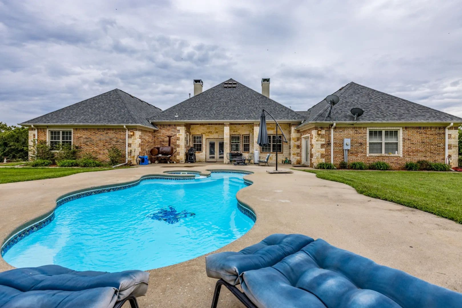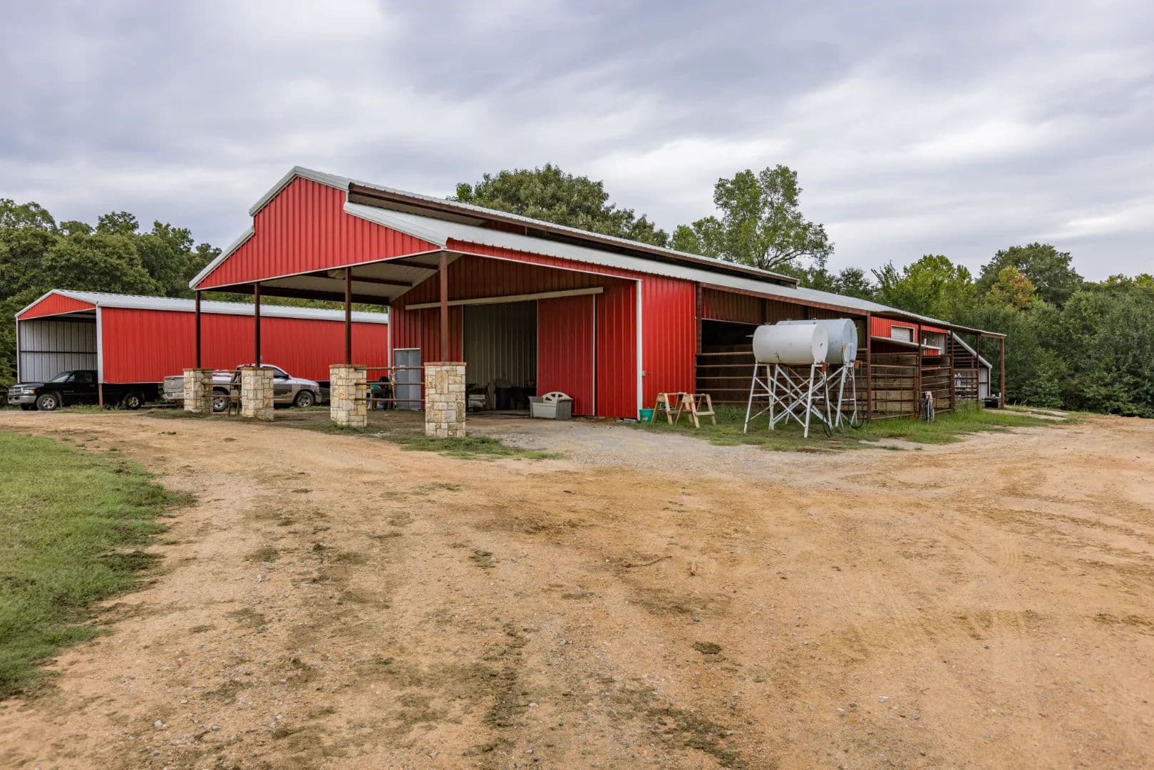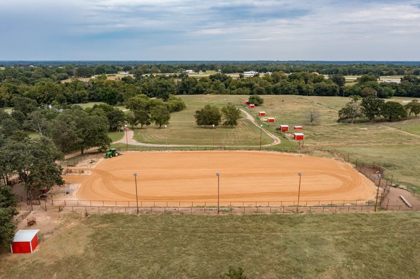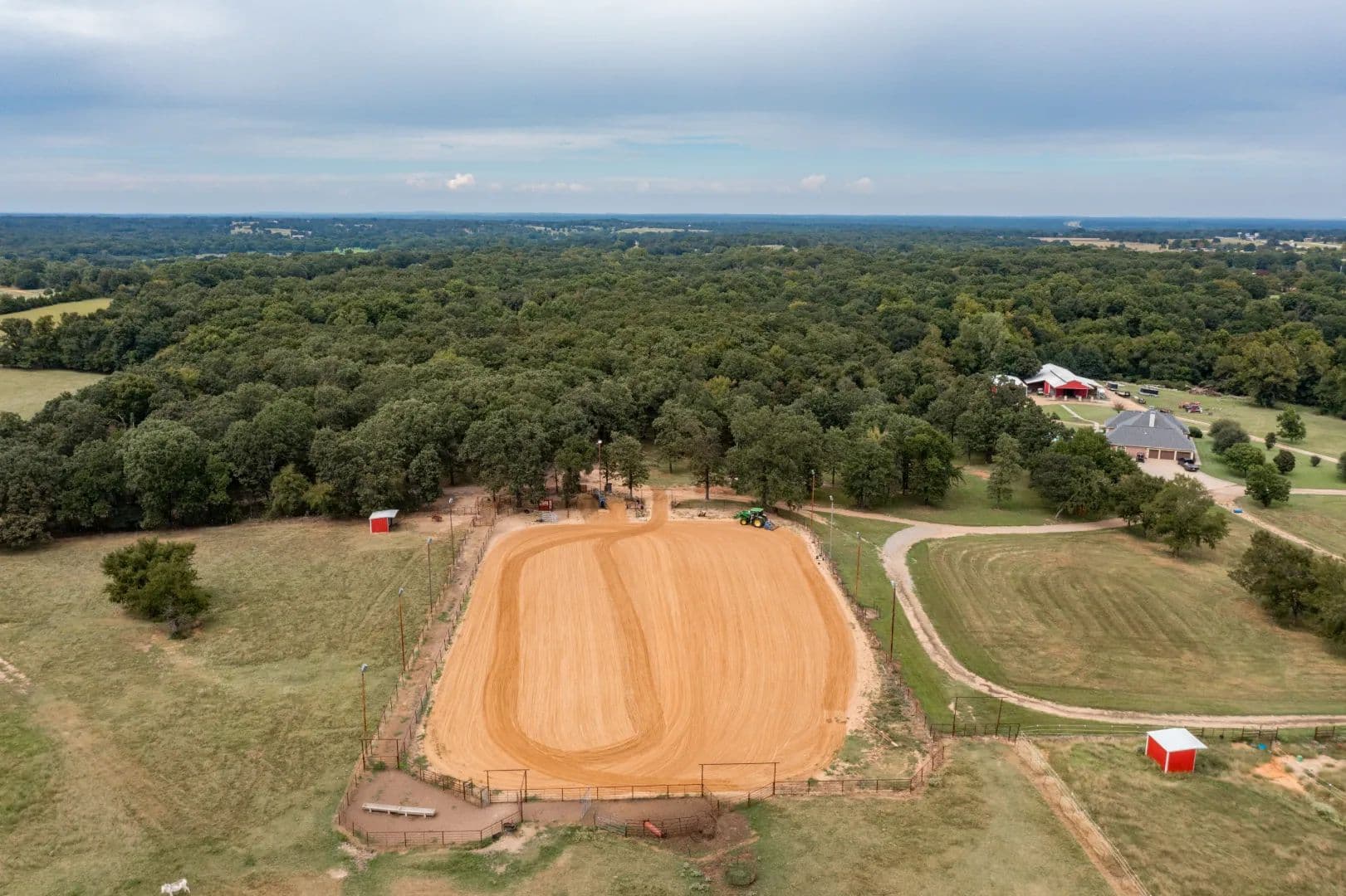 Luxury Ranch on 97+- Acres with Horse Barn and Lighted Arena Nestled away from the hustle and bustle, this property offers the perfect blend of tranquility and luxury. The beautifully landscaped grounds feature a lighted and heated inground pool, a poolside gazebo with a hot tub, and a professional 14-zone sprinkler system. Horse enthusiasts will love the 5-stall horse barn with a wash rack, heated and cooled tack room, RV or LQ covered parking, hay storage, and a connex storage building. The 37x73 shop provides ample workspace, while the 166x300 lighted arena is ideal for roping, barrels, and other equestrian activities. Also included are several turn out pens and 6 Horse sheds with their own water supply. Enjoy the great outdoors with two ponds (including a large catfish pond with a fishing dock) and abundant wildlife. The property also features a playground, picnic area, and firepit for entertaining guests. Inside the luxurious home, you'll find an open kitchen and living concept, a formal dining room, granite countertops, a propane fireplace, an office, a game room with a wet bar, and two master suites with private baths and walk-in closets. Owner financing available – Seller is open to offering owner financing with acceptable terms. Contact listing agent for details.