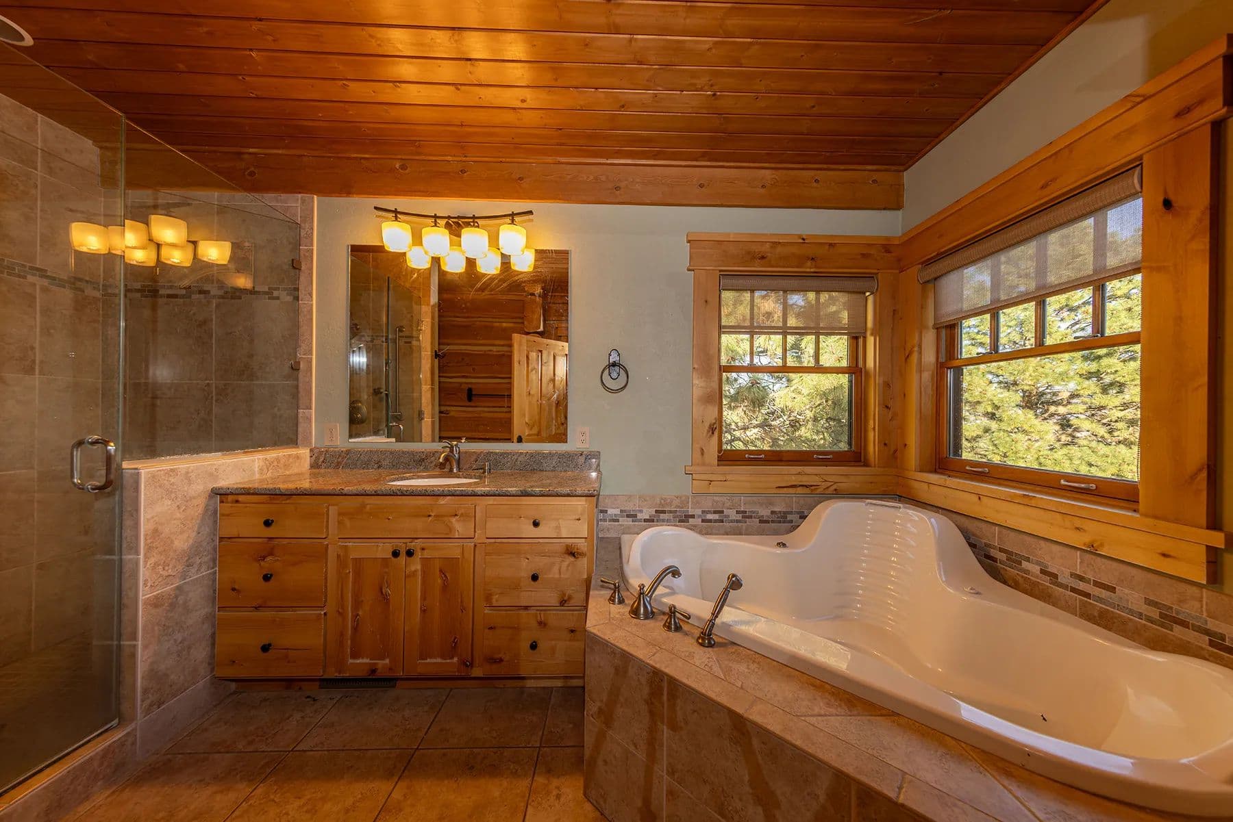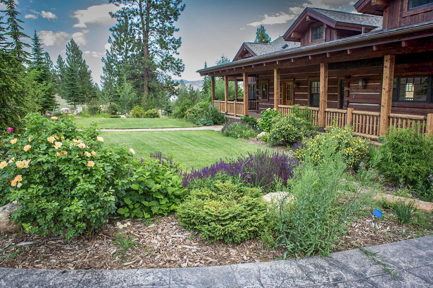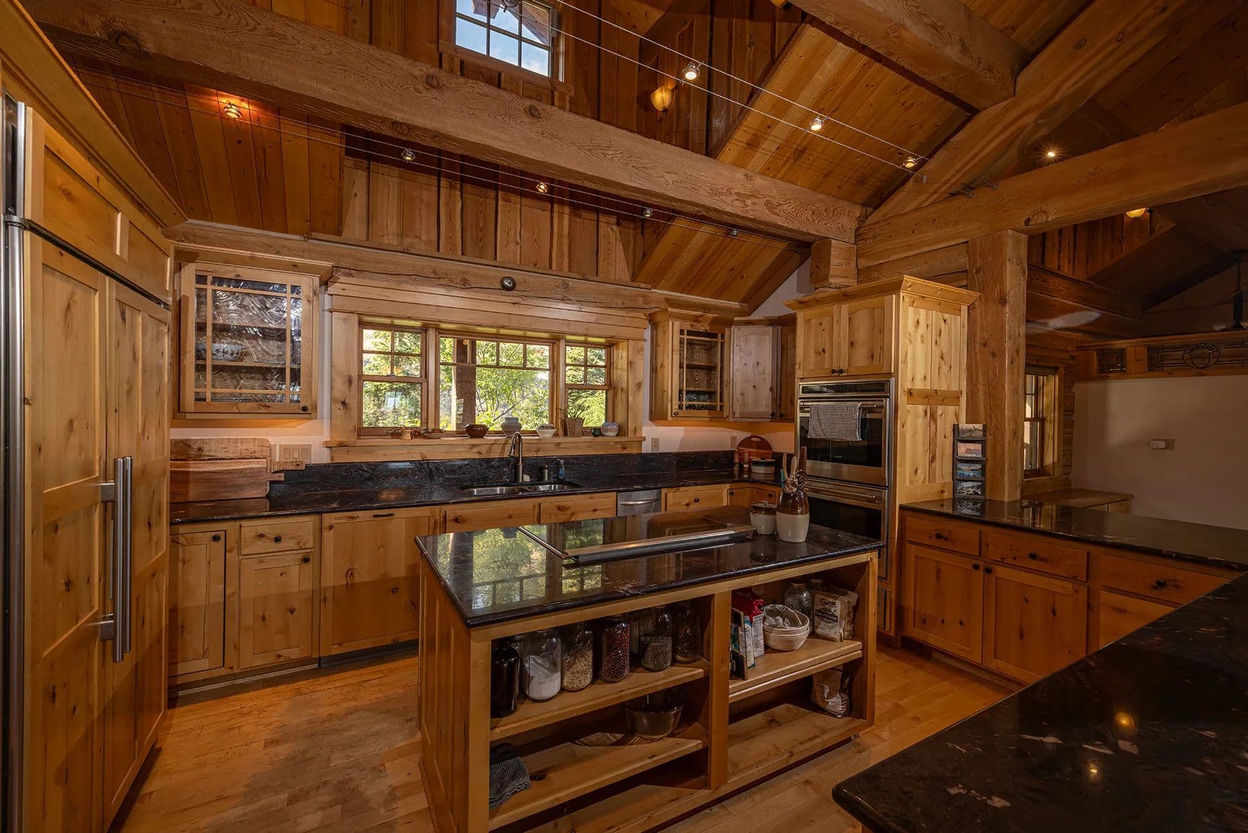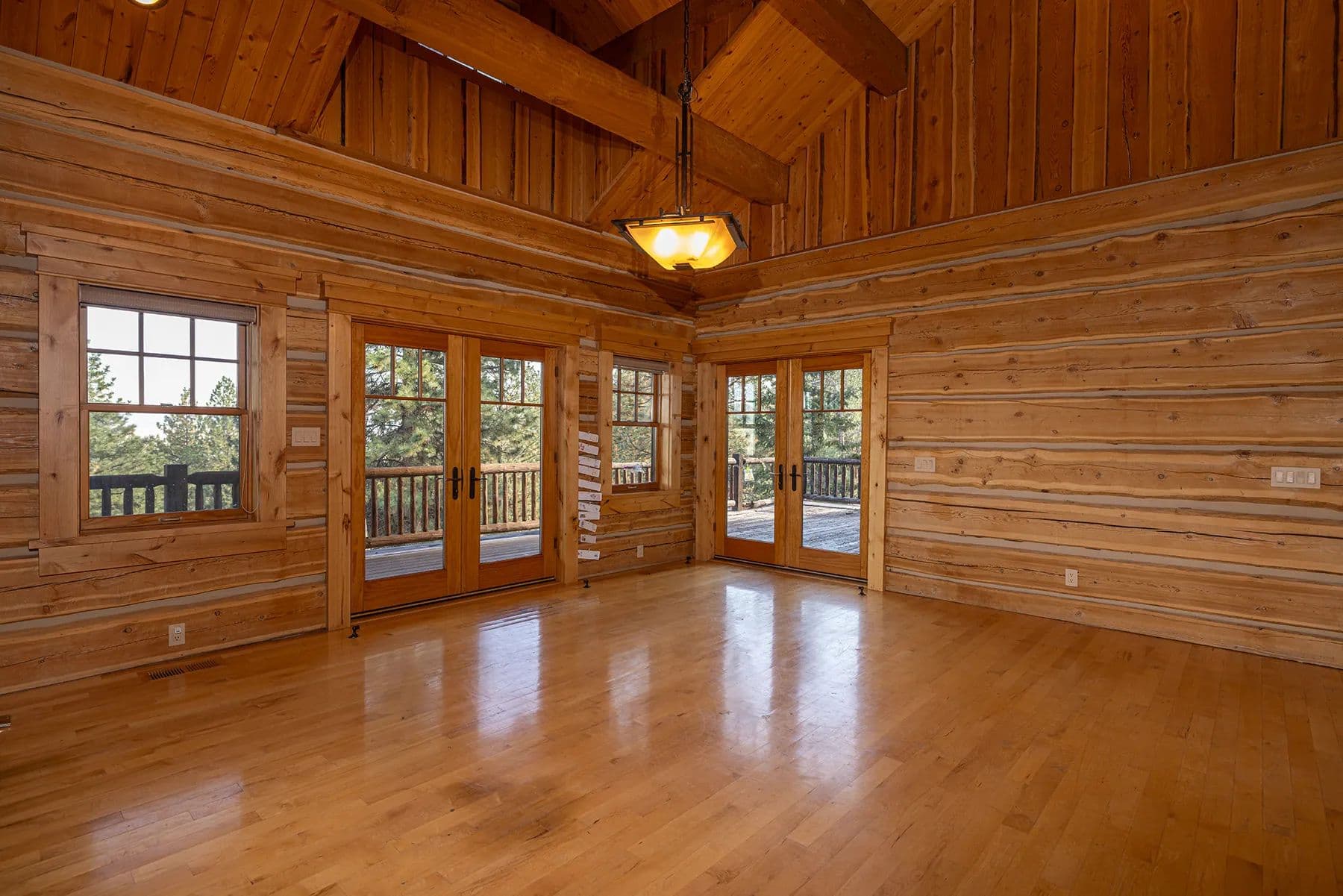 ~ 5,000+/- square foot five-bedroom, six-bathroom custom log residence with double car garage and wrap-around deck in a private forest setting