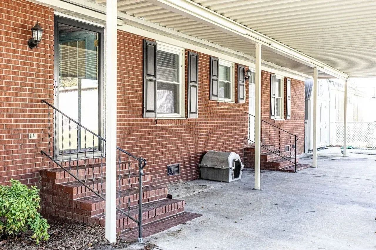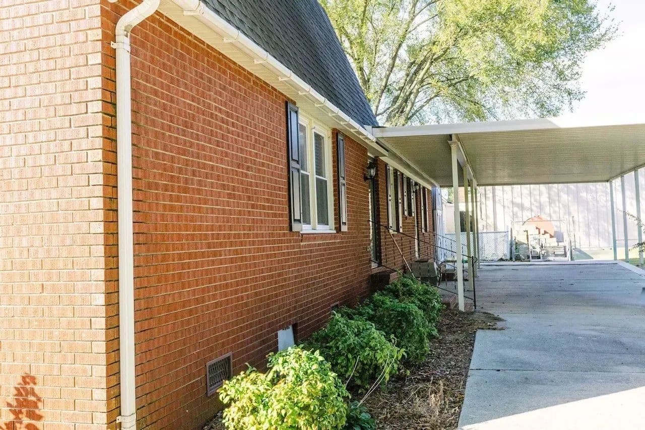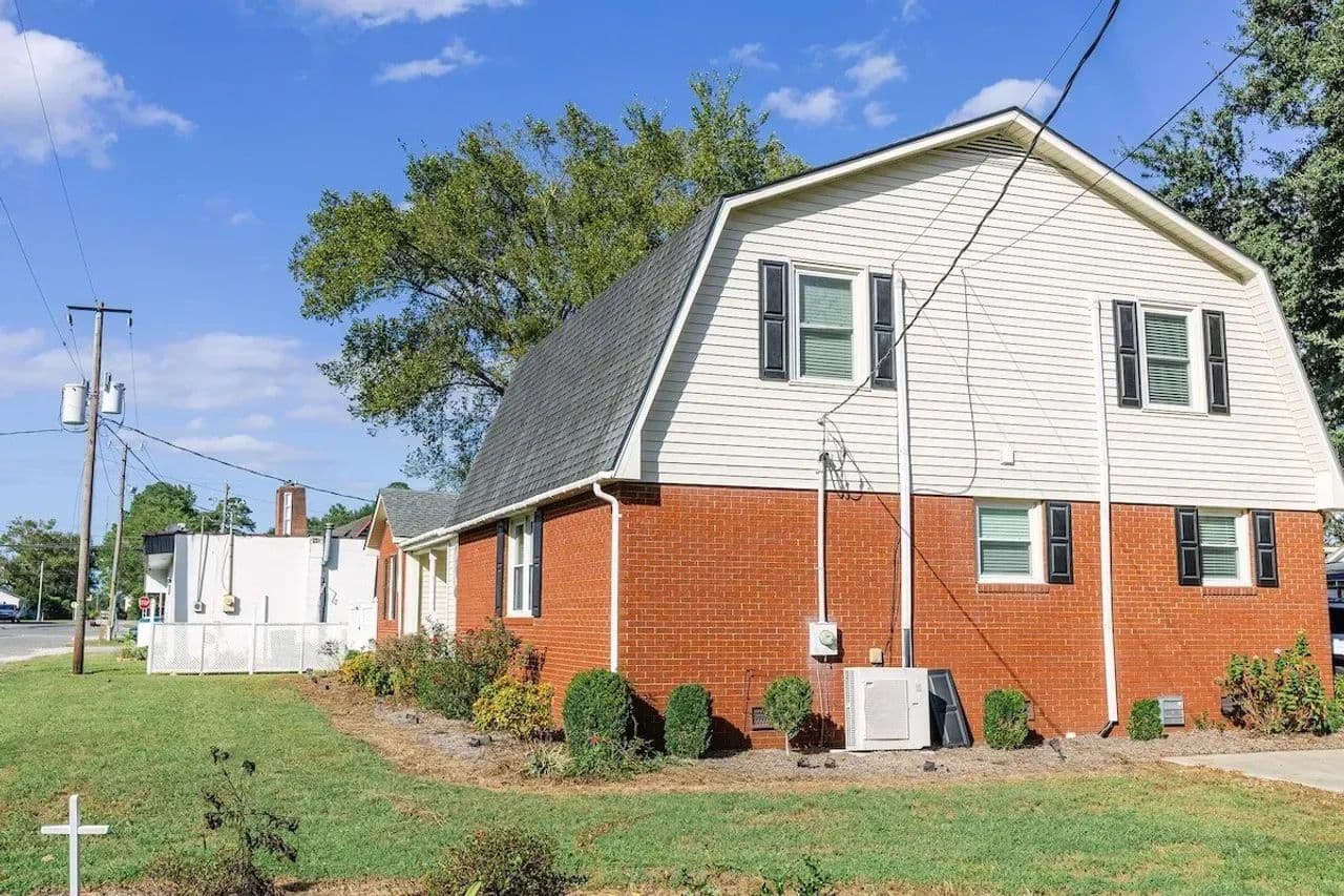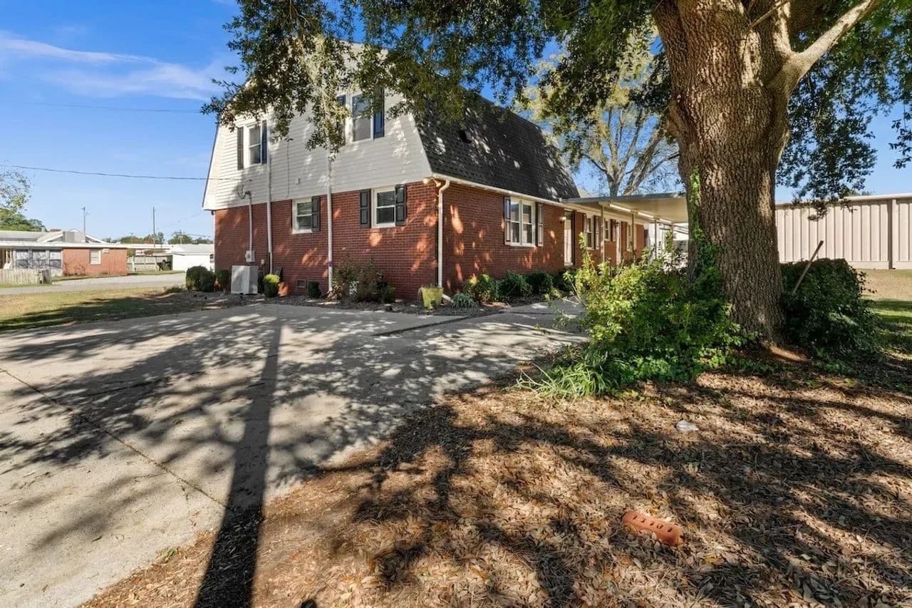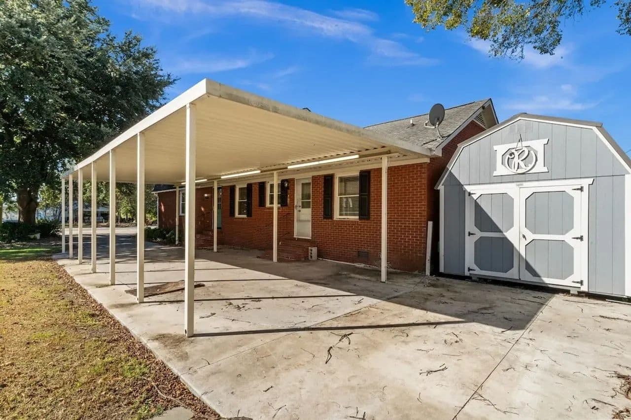 Nestled on .11 acres on a corner lot in town, this charming brick home offers over 2400 heated square feet of comfortable living space, perfect for those seeking space to spread out. With 4 bedrooms, 2 full bathrooms, and a large bonus room, this home has plenty of room for the whole family. Step inside to find a spacious and open kitchen and den with a formal dining room complete with beautiful built-in corner cabinets. The updated kitchen features a large island, providing ample space for casual dining. Three of the bedrooms are conveniently located on the first floor for easy accessibility. The primary suite is thoughtfully positioned on one side of the home for added privacy,while two additional bedrooms and a full bath are located on the opposite side—ideal for guests, children, or a home office setup. A spacious laundry room features a deep utility sink, ample cabinetry for storage, and convenient access directly from the carport. Upstairs, you'll find a generously sized bonus room, perfect for use as a playroom or a hobby room, and an additional bedroom. Upstairs also offers a large storage closet and plenty of storage space tucked neatly into the eaves—perfect for seasonal items or household extras. The exterior boasts a low-maintenance brick exterior, a spacious driveway with plenty of parking, a carport, a quaint covered front porch, and a storage shed.