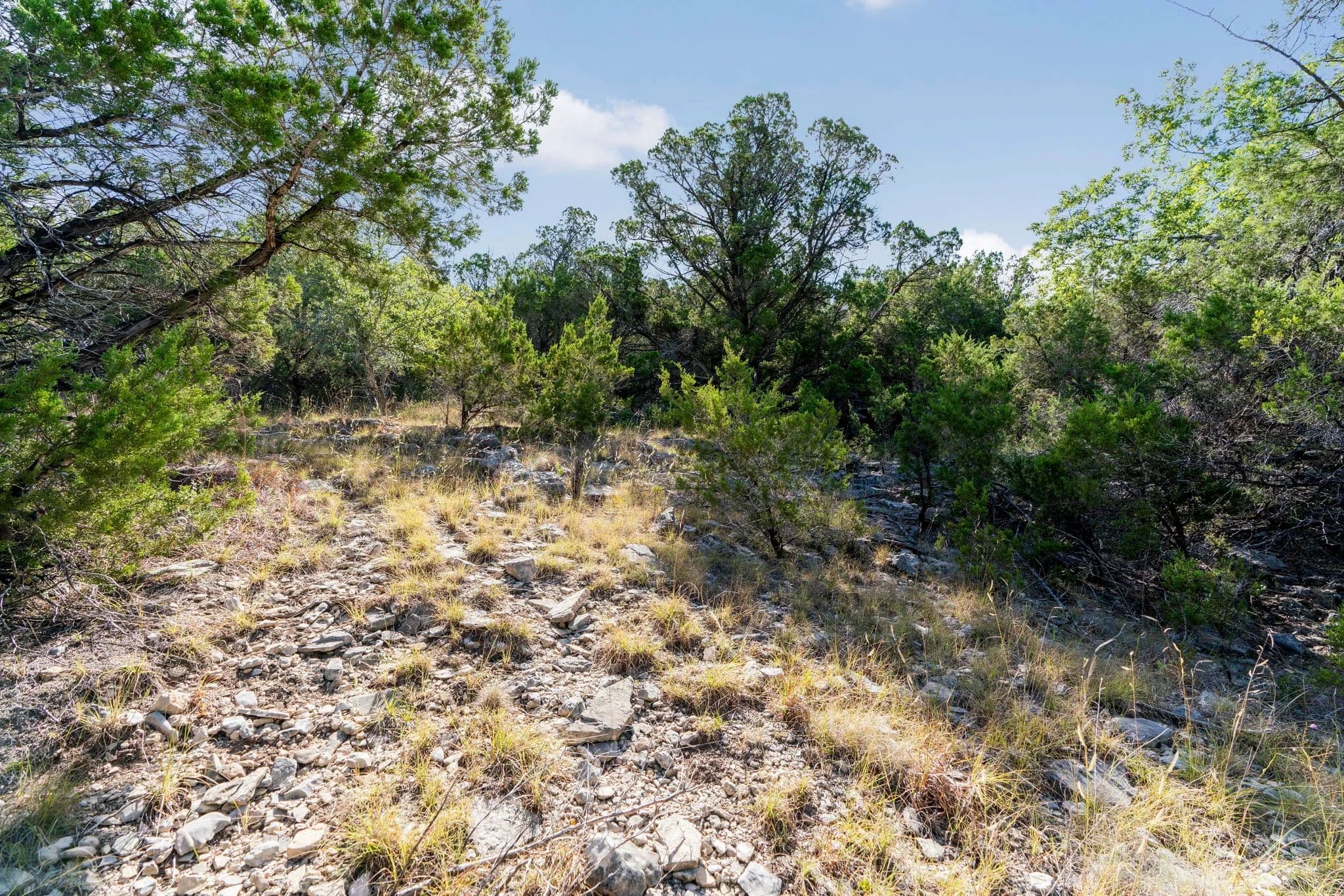 Welcome to 6.75 peaceful acres just North of Wimberley, Texas, located within the scenic Rainbow Ranch subdivision. Known for its large lots, rolling hills, and tranquil country atmosphere, Rainbow Ranch offers a rare blend of privacy and community. Residents here enjoy the freedom of larger acreage tracts, beautiful Hill Country views, and the quiet charm of country living—all just a short drive from Wimberley’s vibrant town square. This serene property features level terrain with distant Hill Country vistas and gently sloped, terraced areas that provide multiple ideal building sites. At the lower edge of the property lies Panther Creek—where, in wet weather, a natural swimming hole forms and water meanders through the draws connecting the surrounding hills. The land is dotted with a variety of hardwoods, native grasses, and lush Hill Country vegetation, creating a private, natural setting. Just minutes away, the iconic Wimberley Square invites you to explore its charming shops and local dining, while nearby favorites like Blue Hole Regional Park and Jacob’s Well offer endless outdoor recreation. The world famous Salt Lick BBQ, Trattoria Lisina, and Hays City Store are just a few of the fine eateries in the area. Enjoy the quiet beauty of small-town living in Wimberley and its' neighbor Dripping Springs, with the convenience of Austin and the Austin-Bergstrom International Airport only a 45-minute drive away. **Buyer and Buyer's Agent are responsible for conducting all due diligence and verifying all information, including but not limited to property condition, zoning, permits, taxes, and square footage.**
