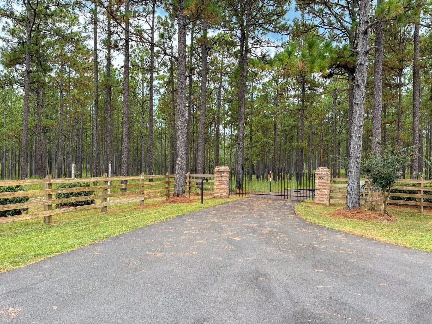 Improvements The entrance of this property is marked by quality fencing and an electronic gate, ensuring both security and convenience. From the gate, a paved asphalt drive winds approximately 1.2 miles through the property and leads directly to the 1-bedroom, 1-bathroom home perched on the lake. Running alongside the drive is a 4-inch community water line, giving the option to easily convert the home from its current well system to community water if desired.