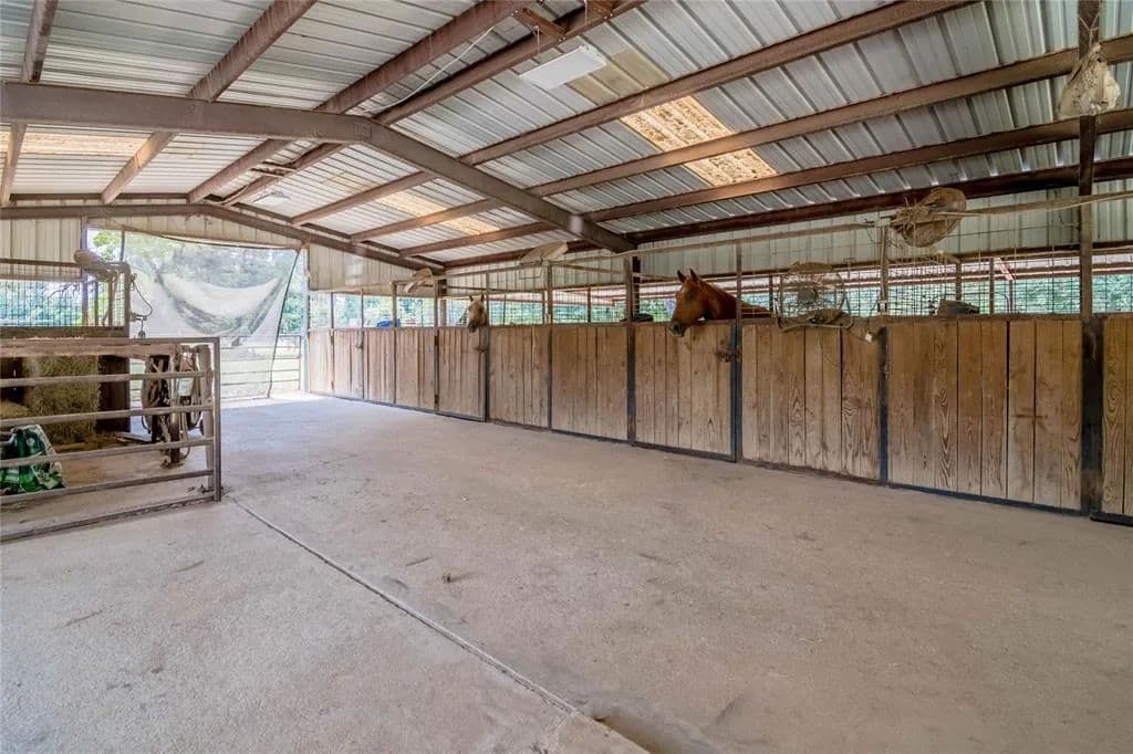 Premier Equestrian Property! Designed, built, and used as a horse training facility, this property has outstanding amenities for anyone serious about horses. Enter the gated drive and appreciate the extensive pipe fencing. Park under the covered entrance of 7-stall barn you’ll find: 5 stalls w/dedicated runs + 1 stallion stall w/private turnout; built-in feeders, auto waterers, and fans at each stall; a wash rack, vet stocks, and two open 12x12 storage areas . Next is the 100’x150’ arena w/chutes, announcer’s stand, livestock holding pens, & cattle return alley; custom 60’ pipe & wood round pen; and walker. Across the drive the cov'd overflow area has space for 6 add'l stalls. Property has 6 pastures, 5 of which have cov'd stalls. Cross the live year-round creek and you’ll arrive at the 3 bedroom/2.5 bath home. The 1st floor of this open plan offers living room w/fireplace, kitchen, dining, office, utility/mud room, + owner’s suite. Up has 2 bdrms, 1 bath, and a den. 35ac +/-