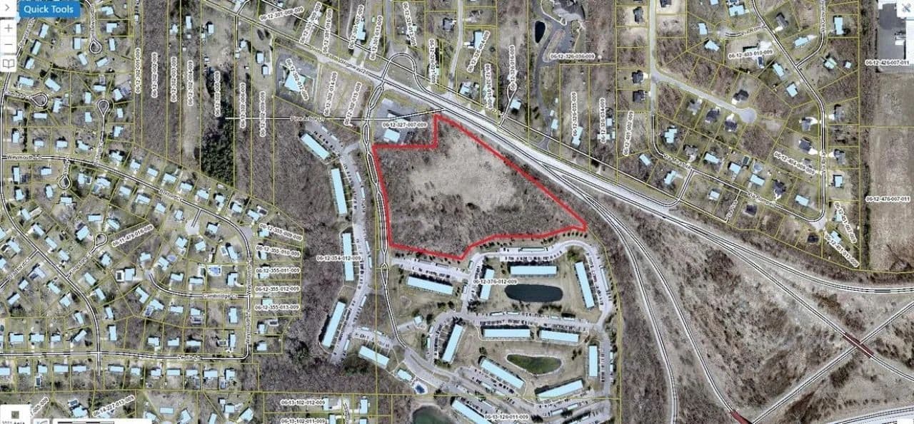 Excellent development opportunity on approx. 11 acres sitting out front of the Arbor Lakes Apartments complex with 1,000 FT of visible exposure on Toledo Rd and 530 FT of frontage on Pine Arbor Dr. Located just off the U.S. 20 Bypass (24,000 cars daily) and CR 17 (25,000 cars daily). In Concord School District, the property's location allows for easy access to and from many parts of the region. Property is 2 miles from a large industrial area that includes highly reputable businesses including Thor Motor Coach, Siemens Healthcare, Godfrey Marine, Forest River, Lippert Components, Welch Packing, and Carpenter Co. Property is 4 miles from downtown Elkhart, 5.5 miles from Indiana Toll Road Interchange, and 9 miles from Downtown Goshen. Bypass makes an easy thoroughfare from Elkhart to South Bend and beyond. Goshen, IN less than 15 miles away and will complete a 315 acre industrial park just southeast of the Elkhart County Fairgrounds by the end of 2025. Zoned R: Residential.