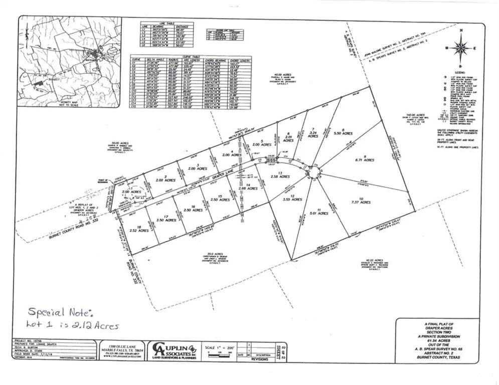 Draper Acres Subdivision is a 61.34 acre tract of land subdivided into eighteen parcels and/or lots. The parcels (lots) range in size from two (2) acres to 7.37 acres. Electricity is available; however, well and septic are needed. Access in and out of the subdivision is provided by a new asphalt paved road with a large cul-de-sac at the end of the road. The subdivision is surrounded by medium to large acreage tracts of land. (Please refer to attached subdivision plat.)