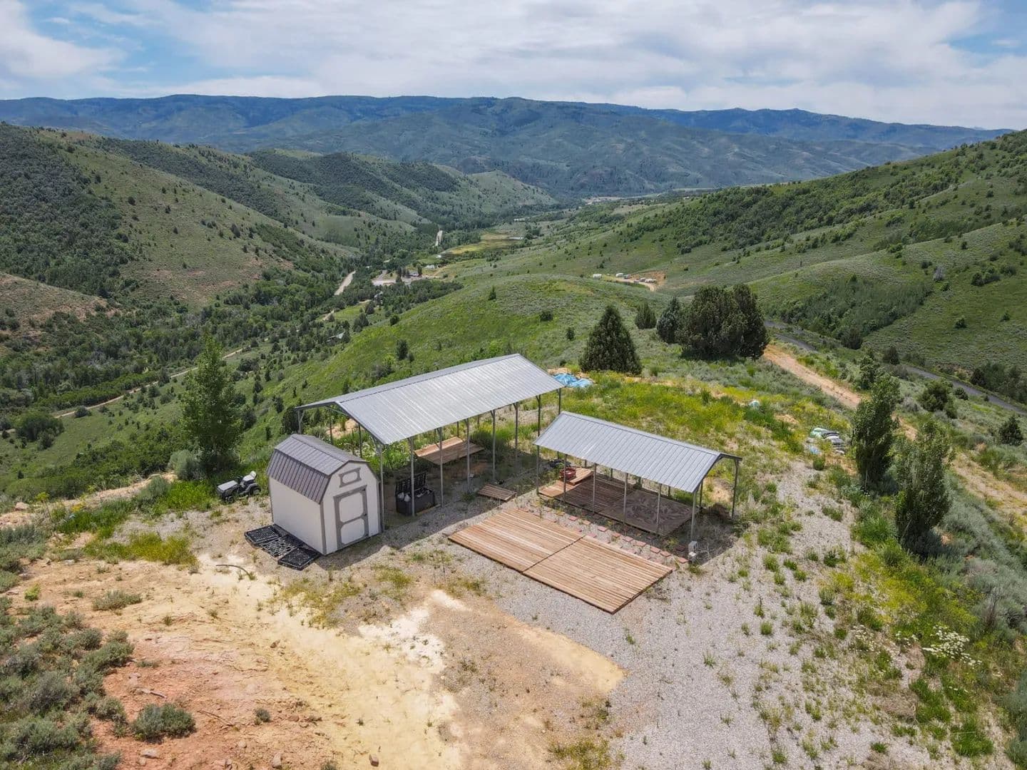 Discover your private mountain retreat in the serene landscapes of Huntsville, UT 84317. This picturesque property boasts 30 acres of expansive greenery and rolling hills, complete with a set of new structures perfectly blending functionality and scenic views. Outbuildings include a robust storage shed and a spacious covered deck designed for year-round enjoyment and gathering. This land offers a unique opportunity to construct your dream home or use as a peaceful getaway with panoramic views of the Wasatch Range. The property's elevated position ensures privacy and uninterrupted nature views, making it an idyllic setting for those seeking tranquility or seeking adventure in nearby forested trails and waterways. Don’t miss out on this exceptional chance to own a piece of mountain paradise.