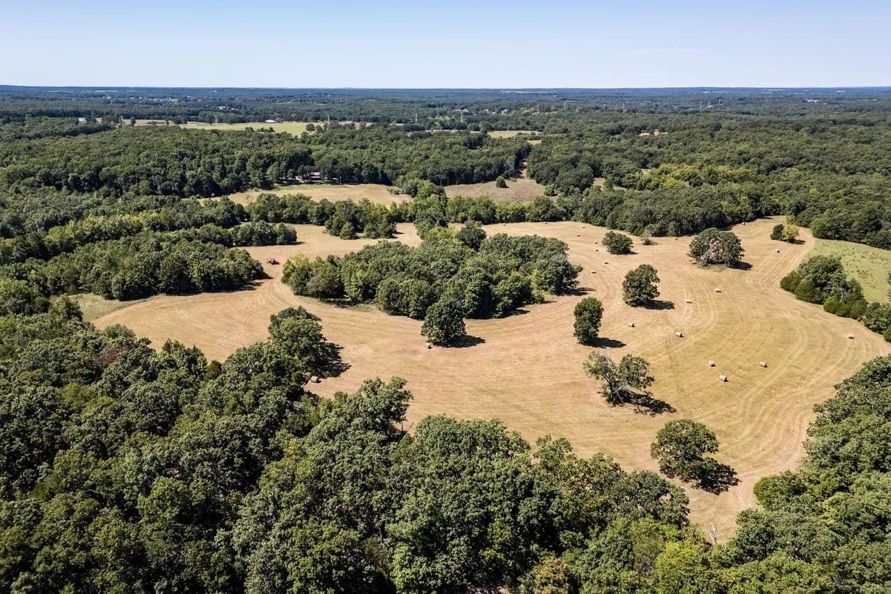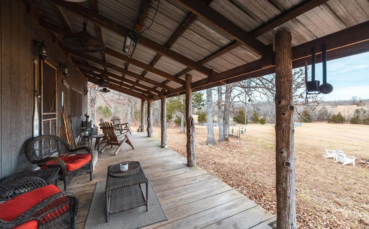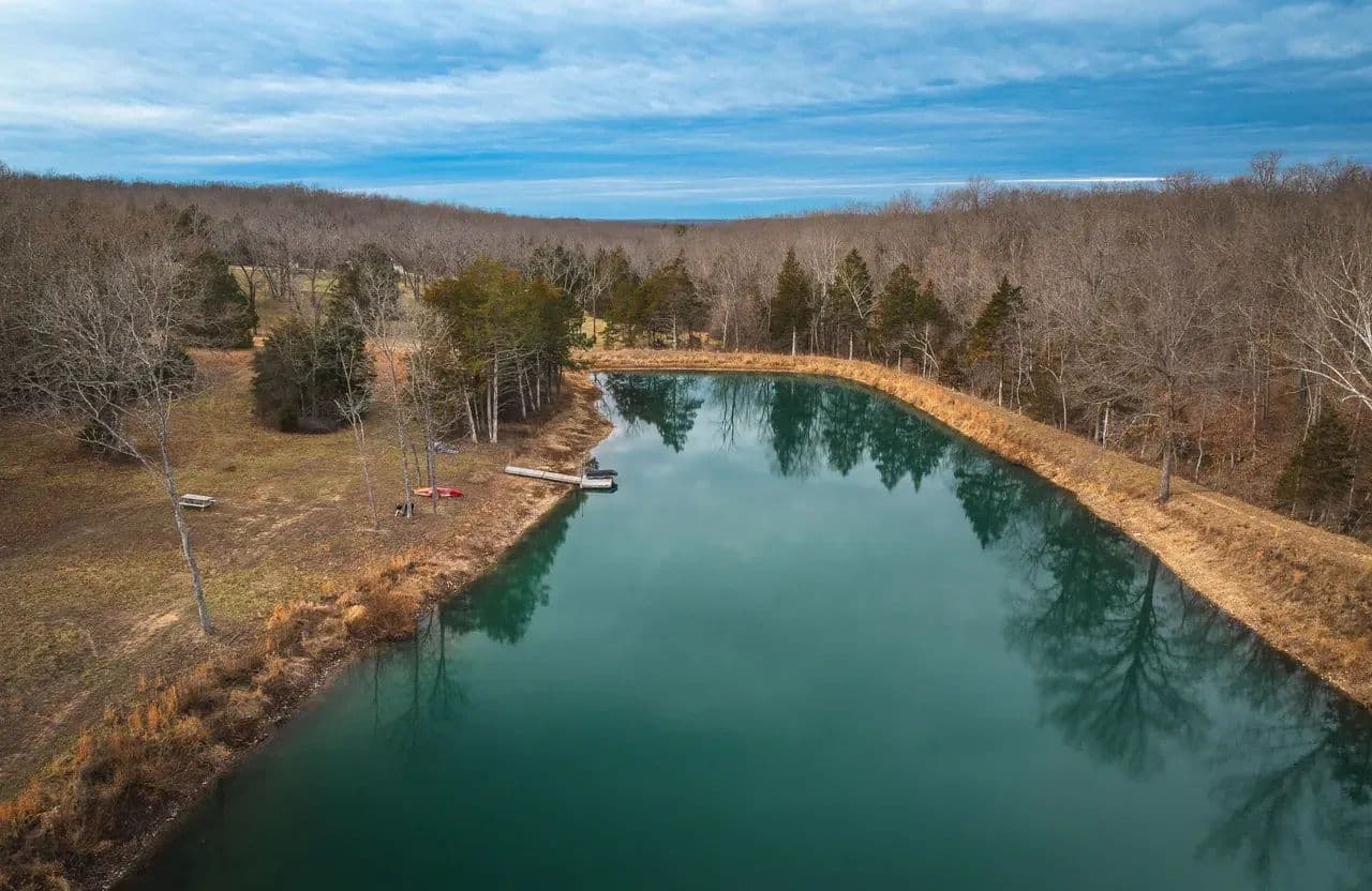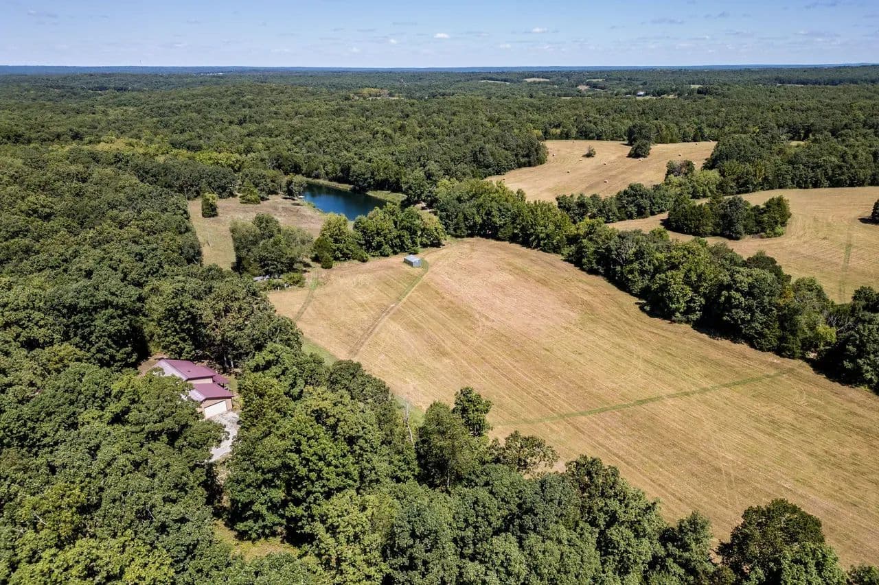 Lazy H Ranch, a rare opportunity to own 132 private acres just three miles south of Steelville, Missouri. Property offers the perfect mix of mature timber, open pasture, trails, and abundant wildlife with excellent deer hunting. Water is a standout with a stocked 2.5-acre lake with a dock perfect for fishing, a swim or put your kayak or small boat in for a float. Plus two additional ponds, and seasonal creeks that enhances both beauty and function. A private drive ensures complete seclusion and privacy. The home is a 3-bedroom, 2-bath barndominium with an open-concept floor plan, 1.5 story, designed for comfort and easy living. The home includes an oversized garage, perfect for equipment, recreational vehicles, or workshop space. The deep front porch expands the length of the house and offers exceptional porch-sitting with peaceful views of the surrounding land. Located close to town conveniences while feeling worlds away, Lazy H Ranch offers a rare combination of privacy, accessibility, and natural beauty. Properties with this acreage, water, and improvements — this close to Steelville — are increasingly hard to find. Shown by appointment only.