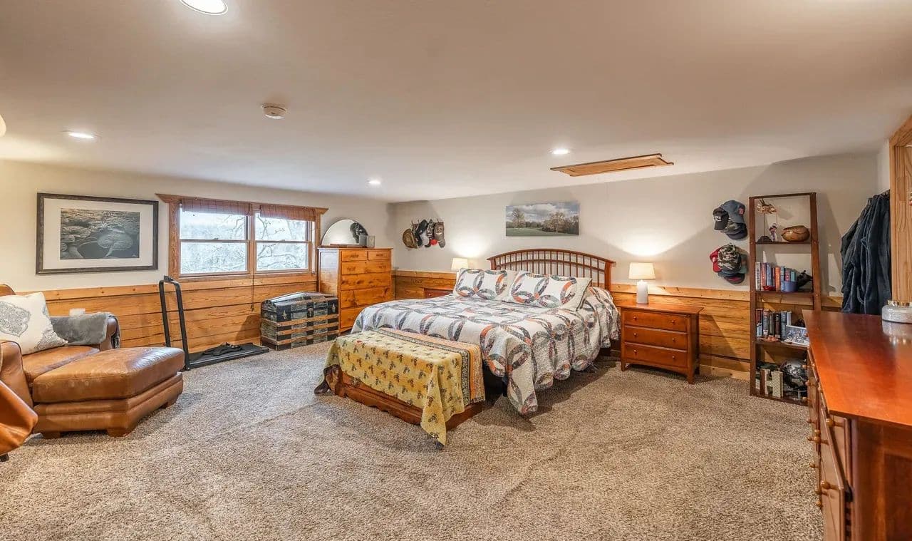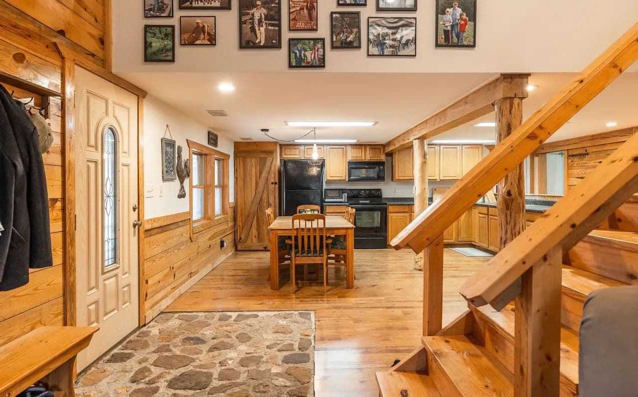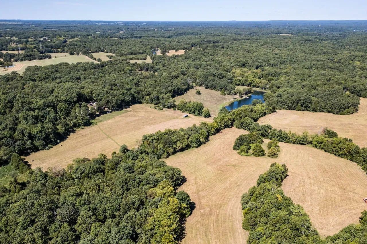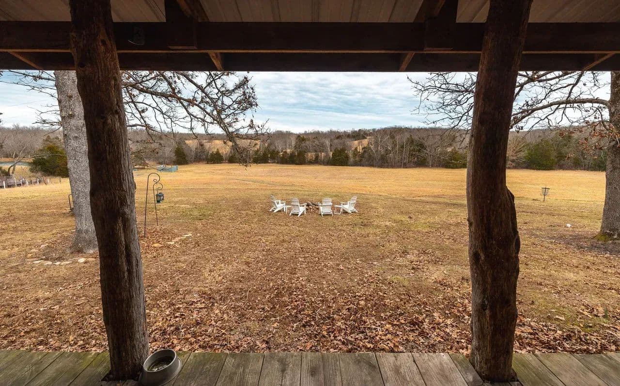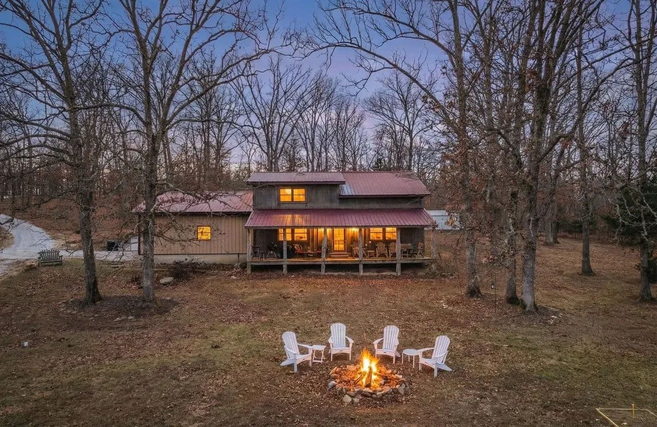 Lazy H Ranch, a rare opportunity to own 132 private acres just three miles south of Steelville, Missouri. Property offers the perfect mix of mature timber, open pasture, trails, and abundant wildlife with excellent deer hunting. Water is a standout with a stocked 2.5-acre lake with a dock perfect for fishing, a swim or put your kayak or small boat in for a float. Plus two additional ponds, and seasonal creeks that enhances both beauty and function. A private drive ensures complete seclusion and privacy. The home is a 3-bedroom, 2-bath barndominium with an open-concept floor plan, 1.5 story, designed for comfort and easy living. The home includes an oversized garage, perfect for equipment, recreational vehicles, or workshop space. The deep front porch expands the length of the house and offers exceptional porch-sitting with peaceful views of the surrounding land. Located close to town conveniences while feeling worlds away, Lazy H Ranch offers a rare combination of privacy, accessibility, and natural beauty. Properties with this acreage, water, and improvements — this close to Steelville — are increasingly hard to find. Shown by appointment only.