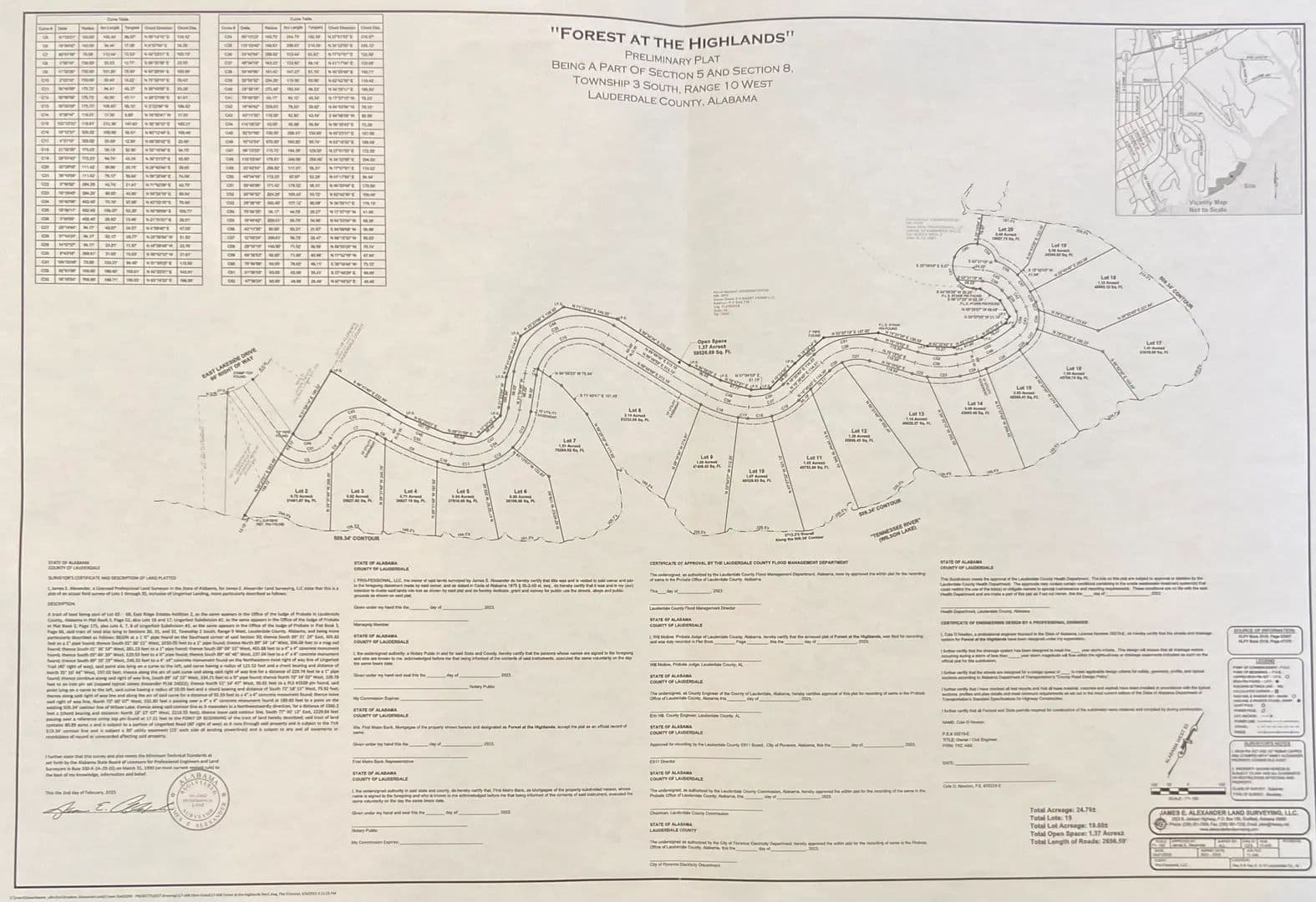 This gorgeous piece of property on 3 +/- acres is at the end of the new development of Forest at the Highlands. This section could be your own private area located on a large slough off the main part of Lake Wilson, Florence, AL. close to the University of North Alabama, North Alabama Medical Center, and the "happening" City of Florence. There are no other tracts of land such as this! Quiet lane leads to a wonderful building site for one or more homes. This property is large enough for your family to enjoy a guest house on your estate-type property! This new community will have lovely neighbors nearby, and this larger tract of land will appeal to a buyer that wants to live very much in peacefulness, with views that are gorgeous of our fabulous lake. Existing concrete leveled off seawall. This land is one of a kind in our area. Call Jeannie or Liz for more details, Covenants and Restrictions. The "crown jewel" of Forest at the Highlands!