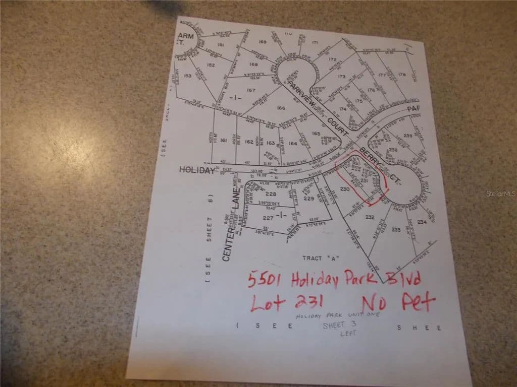 Vacant land in sought after Gated Community of Holiday Park, not in the pet section. In Holiday Park you own the land with a deed and the maintenance fee of $195.00 monthly ($2340.00 a year) is included in your taxes. This is a corner lot measuring 3623 sq ft. Holiday Park offers many amenities including 2 Pools, Tennis Courts, Pickle Ball, Bocci, Shuffleboard, Laundry, Library, Tennis, Horseshoes, Bingo plus other card games, Fitness Room and so much more. This is a perfect place for your new manufactured home. Come and see!