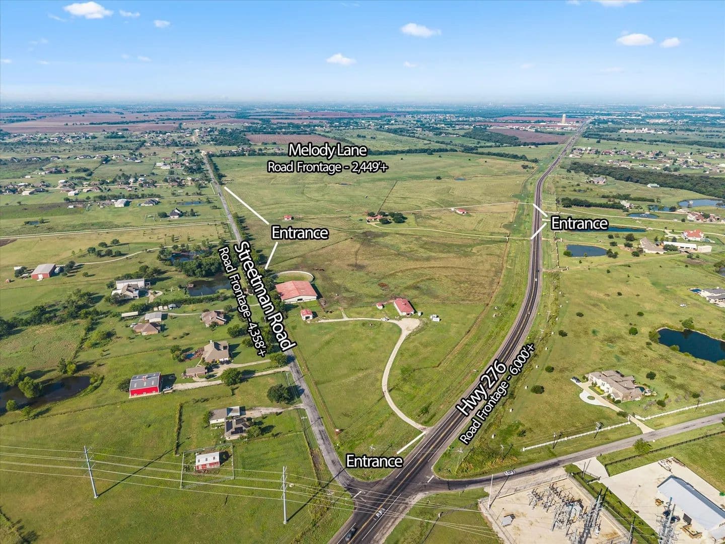Situated in one of the fastest-growing counties in Texas and the U.S., this 206.29± acre property offers remarkable potential for development, investment, or continued agricultural use. Located just 50 miles east of Dallas within the Rockwall County ETJ—outside city limits—the property features extensive frontage with multiple entrances off Hwy 276 and Streetman Road, as well as frontage on Melody Lane. It’s well-suited for residential, commercial, industrial, or mixed-use development. Improvements include a main home, guest house, workshop, storage shed, three barns, indoor and outdoor arenas, and pipe and cable fencing. Utilities include Cash SUD water (18” and 8” lines), five electric meters, propane, and a generator. According to FEMA, approximately 20± acres lie around the creek. TXDOT reports traffic volumes of 17,326 vehicles per day. With its impressive size, prime location, strong utility access, no HOA, MUD, PID or PUD and promising growth outlook, this property stands out as a rare opportunity in one of North Texas’s most vibrant corridors. Survey Available.