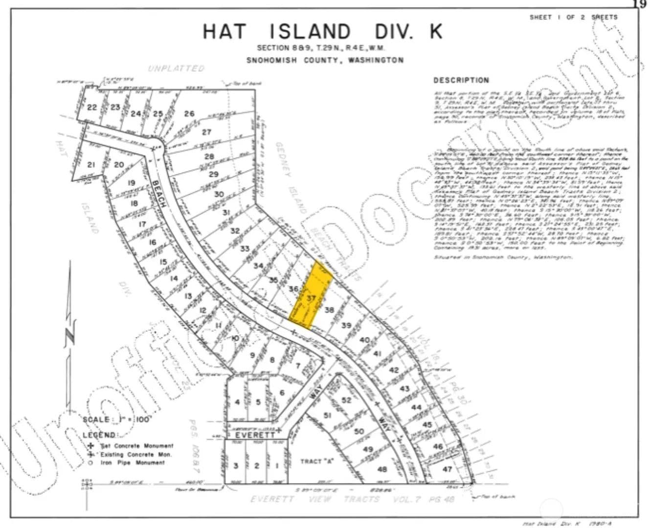 K-37 is .33 acre Easterly facing buildable bluff lot that will provide great views of Possession Sound as well as Majestic Mt Baker, The Cascade Mtn range & beautiful morning sunrises. Hat Island is 15 minutes West of Everett, you'll access the island by way of your own boat or on the 48 passenger foot ferry to the Islands private marina. On island you'll experience incredible wild life up close; soaring eagles, orca & gray whales, herons, seals, starfish & more. You'll stay very active with endless beach walks around the island, USGA golf course, disc golf course, community garden, kayaking, fishing, crabbing, clamming, pickle ball as well as community events, art & craft fairs, fishing & golf tournaments & concerts on the beach.