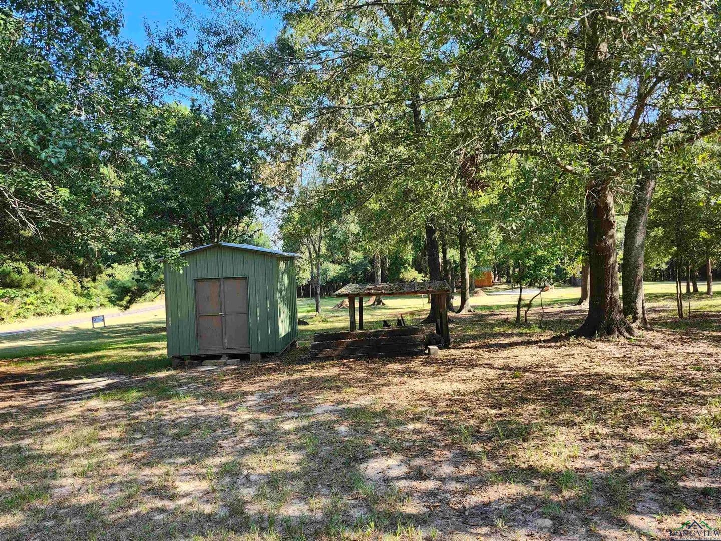 16 Lots, 1.955 Acres, with 350 feet of road frontage on FM 729 with drive-thru to Bass St. Total of 4 culverts, one 24 feet wide for long truck & trailer or RV. Perfect for a drive-in and drive-out Barndo/shop, etc., 28x20 concrete slab ready to build on or expand. 2 power poles, meter boxes with meters, circuit panels, outlets for 50 amp, 30 amp, and 2-20 amp plugs. 2 water meter boxes, 1 meter in and on. Septic system just serviced. Two boat ramps are less than 8 minutes away. There are two new outbuildings: an 8x10 metal building and a 12x16 board-on-board building with a metal roof. There is a 250-gallon propane tank. They call it Deer Cove, where you can come to hunt, fish, camp, or RV while you build what you want. Would lease for RV use. Might divide.