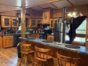 Welcome to this rustic lodge-style retreat nestled on 15.9 peaceful acres in the Jayess community. This property offers scenic beauty, privacy, and country charm. This home features a warm, wood rich interior with custom cabinetry, wood burning stove, and an inviting open concept kitchen ideal for gatherings. Enjoy a fully stocked pond perfect for fishing or enjoying the quiet evenings surrounded by nature. This home also features a large shop with slab. This is a rare opportunity to own a slice of paradise, schedule your showing today.