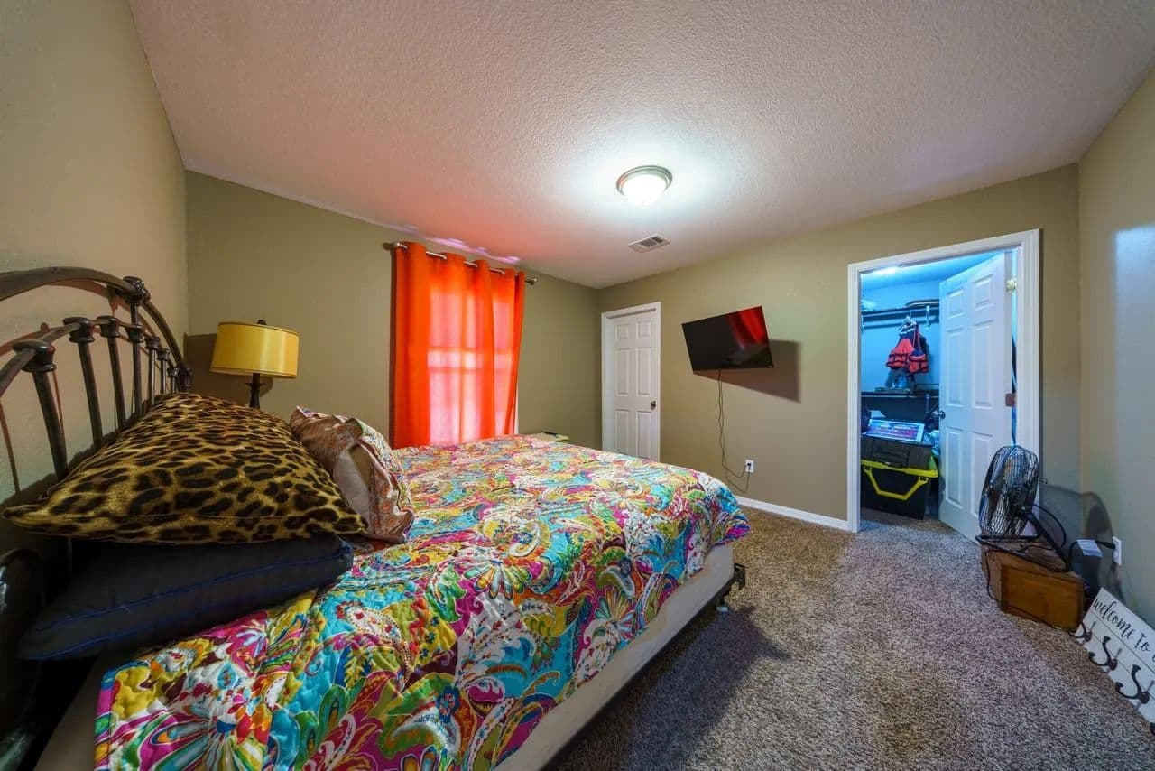 Second guest bedroom near the large guest bathroom featuring a tiled, handicap-accessible walk-in shower