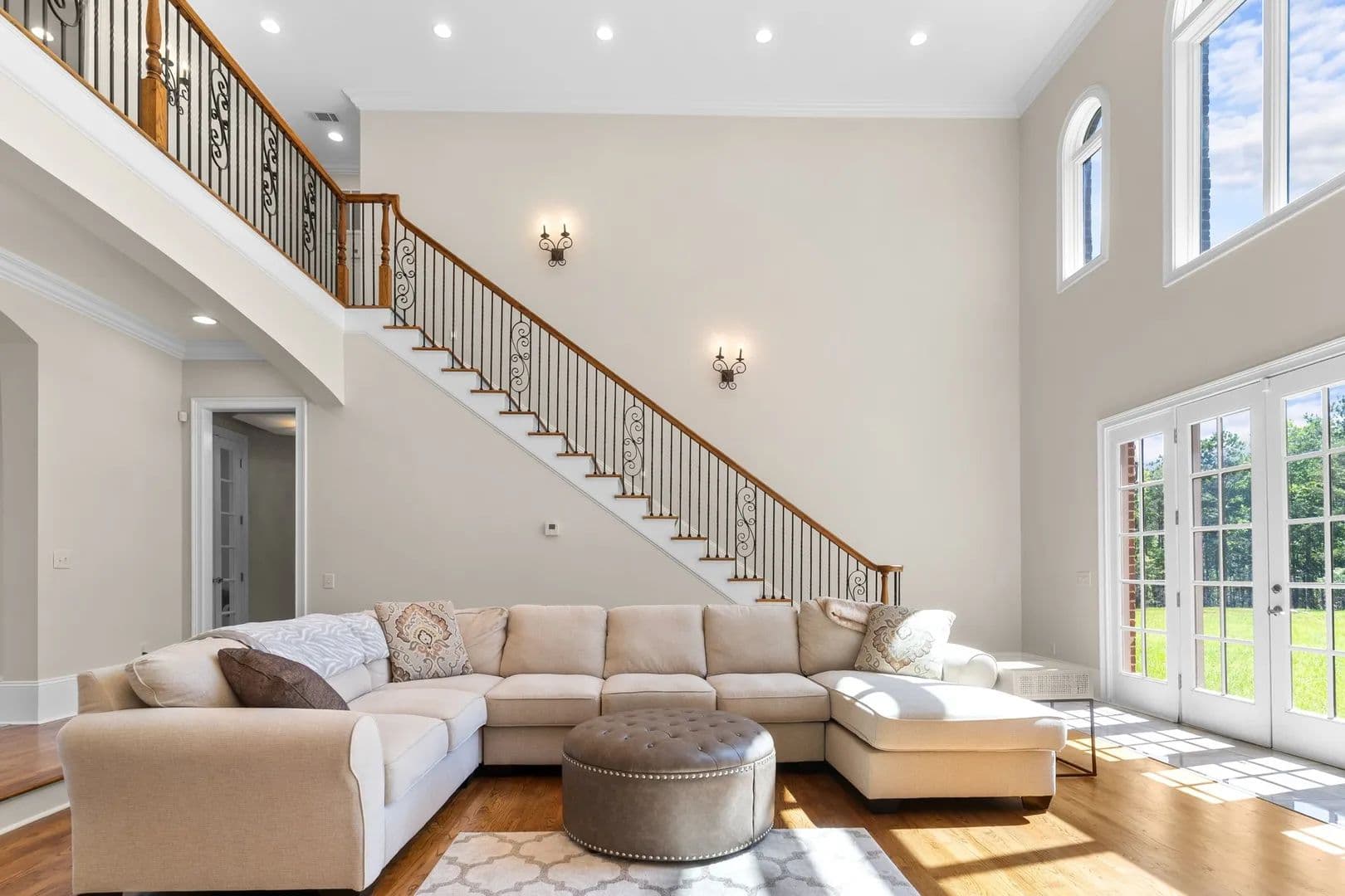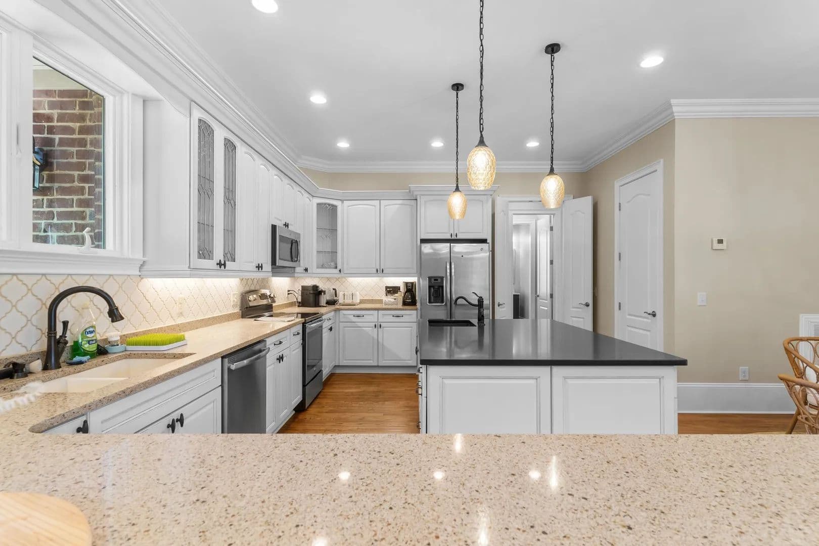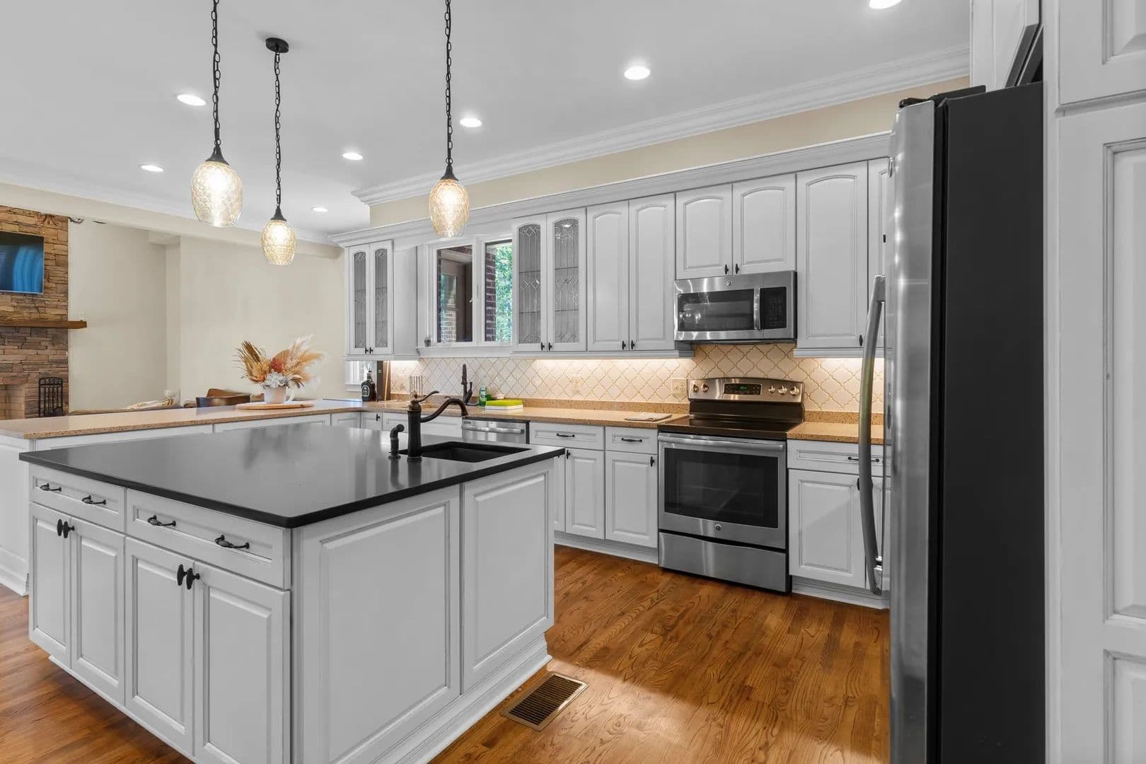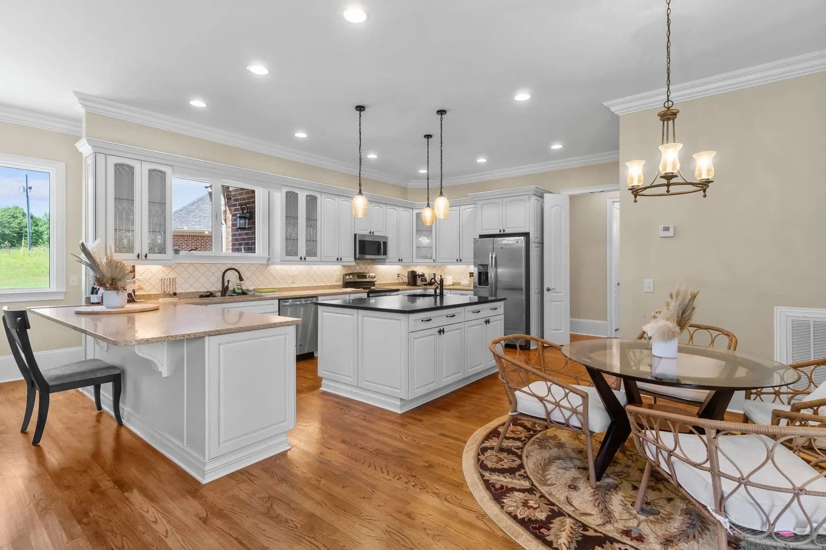 This beautiful brick and stone home offers a warm, welcoming presence from the moment you arrive. Inside, the thoughtfully designed 4-bedroom, 3.5-bath residence features a spacious open-concept kitchen and living area with high ceilings, a cozy fireplace, and generous room sizes—perfect for everyday living and hosting family and friends. Additional highlights include abundant attic storage with potential for future bedrooms or playrooms, along with a heated and cooled detached space currently used as a fitness center that would also make an excellent home office or studio.