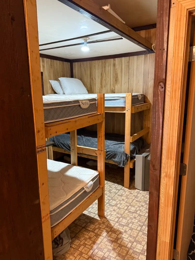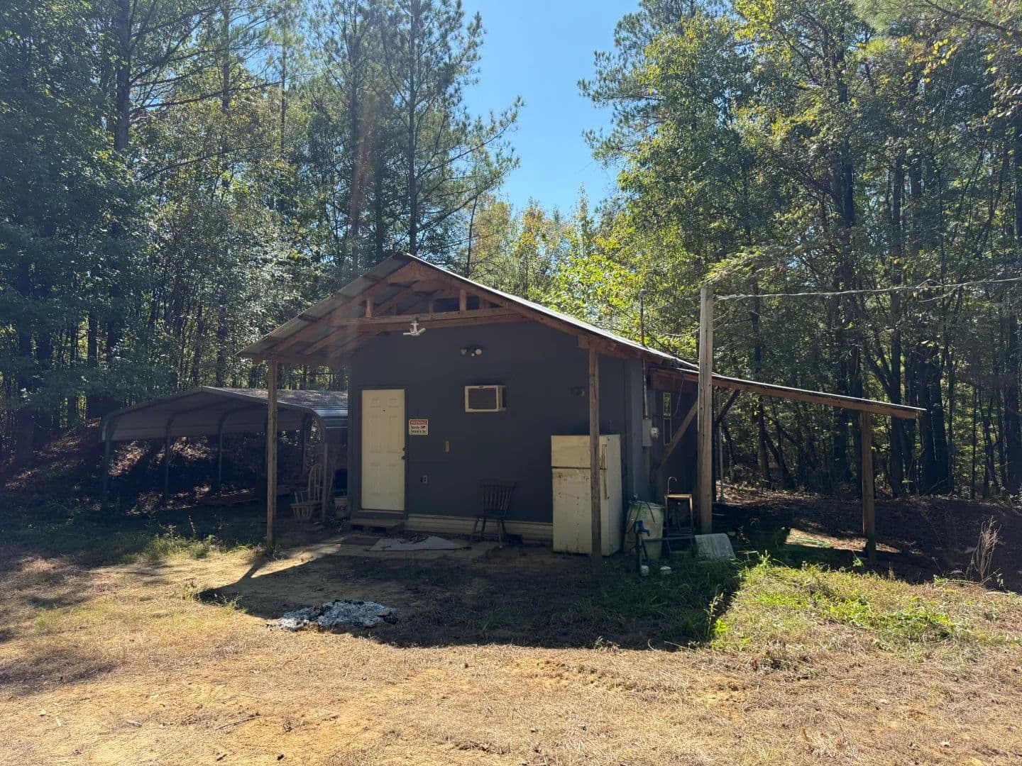 A small hunting camp offers one bedroom and one bath, suitable for a weekend stay. Running water and electricity are connected, and there is also a propane tank in place. Fiber can also be connected from a line on Shook Road.