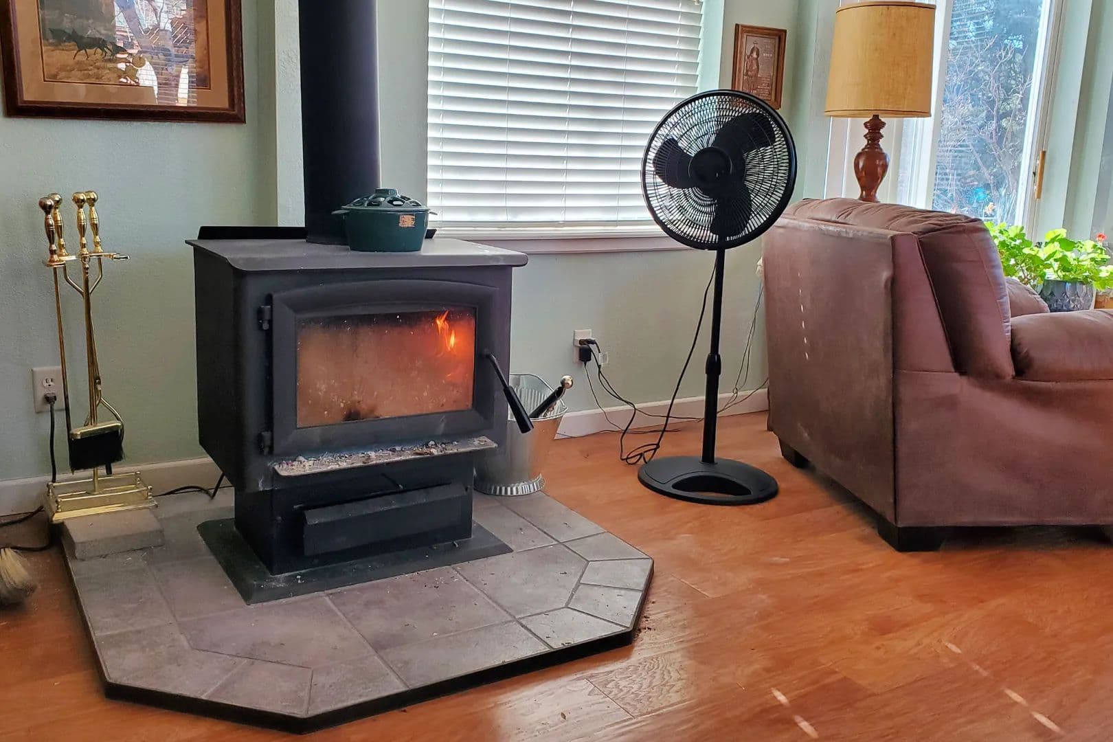* Wood-burning stove in the family room.