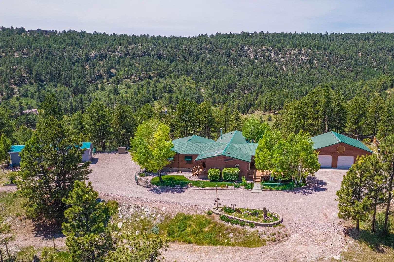 Additional improvements include a detached oversized two-car garage with tack storage, two workshops, a horse shelter, and covered hay storage. No covenants and ample room for recreation or livestock. This property offers an ideal Black Hills retreat.