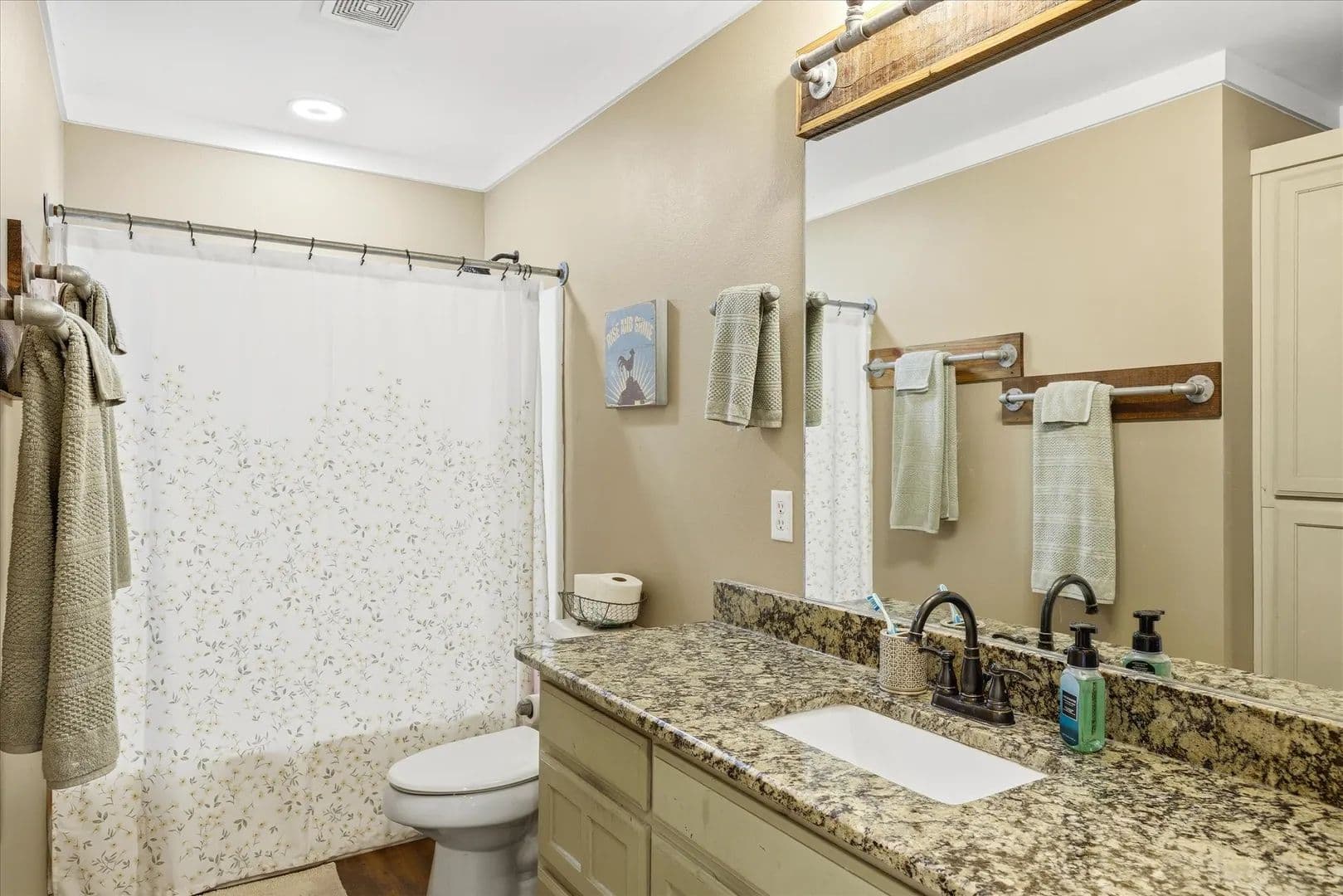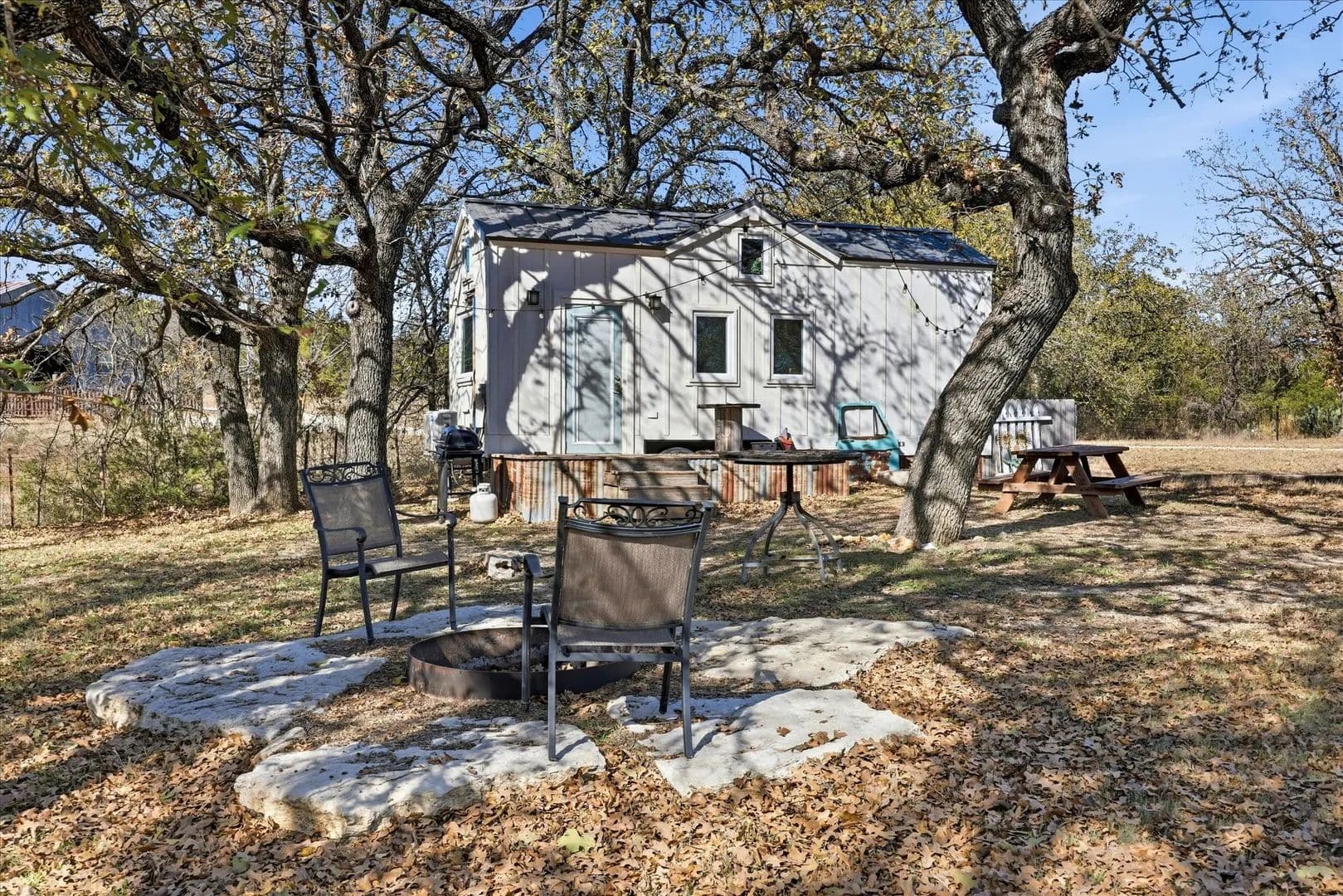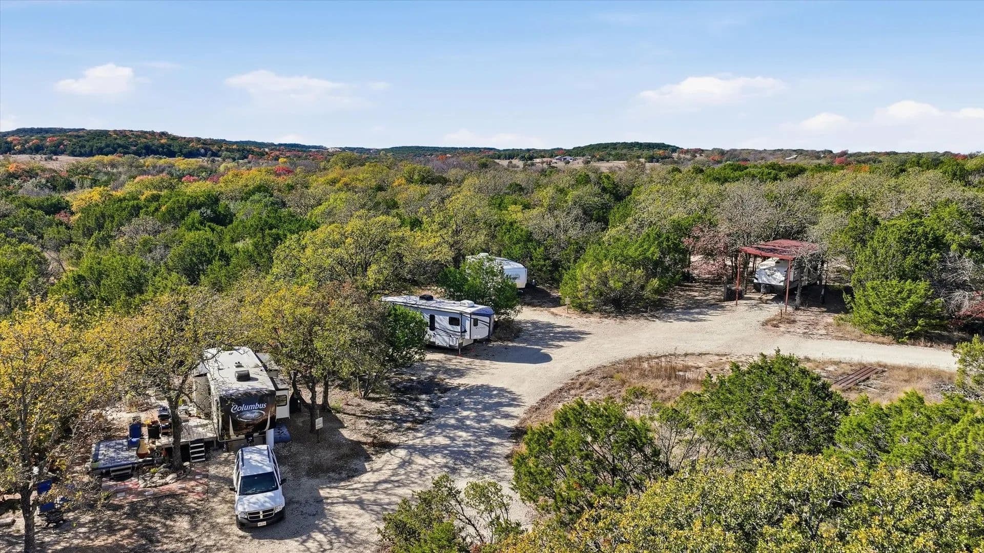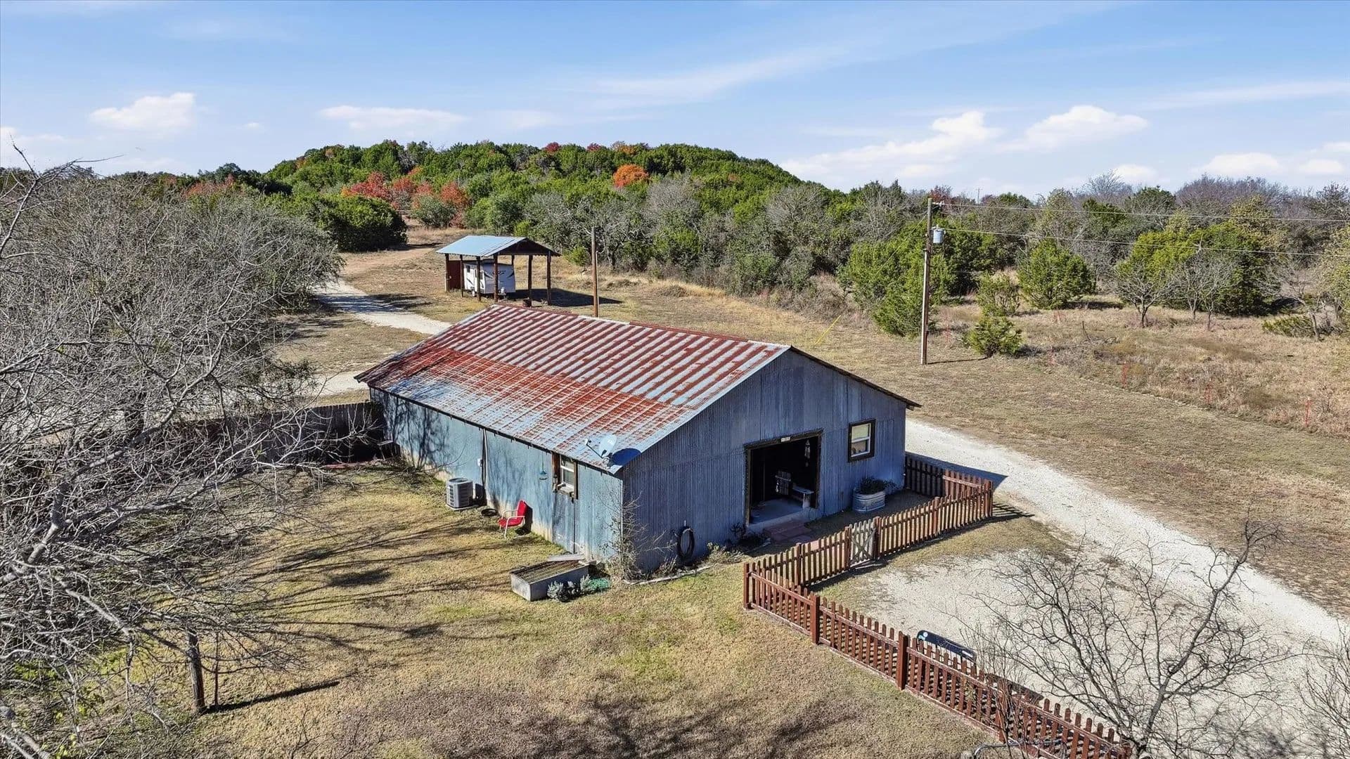 Waumpii Creek Ranch offers approx. 108 acres with a mix of residential, recreational, and income-producing features. The 2,400 sq ft main home sits in a private setting with long views and easy access to the improvements. Just behind the house is a large workshop with room for projects and storage, a covered gathering area, and an enclosed space suitable for an office or studio. The property includes an outdoor chapel area that has been used for weddings and events, adding flexibility for personal or commercial use. A separate two-bedroom, two-bath apartment is currently leased as a monthly rental, and the structure also has space framed for a future second apartment. Existing income sources include a tiny home operating as an Airbnb, a container home rental, and five RV sites leased on a monthly basis. The setup provides immediate revenue with infrastructure already in place. The land features rolling elevation, mixed tree cover, open areas, wildlife, hiking trails, and a seasonal creek. A disc golf course runs across part of the acreage, and there is an area where guests have left painted handprints on the rock. The property’s layout and improvements create strong potential for continued investment use, with existing rentals and room to expand. The chapel area, trail system, and varied terrain make the ranch well-suited for retreats, events, or outdoor-focused activities. The mix of open pasture, wooded areas, and elevated vantage points provides both usability and scenic appeal for future development or recreational enjoyment.