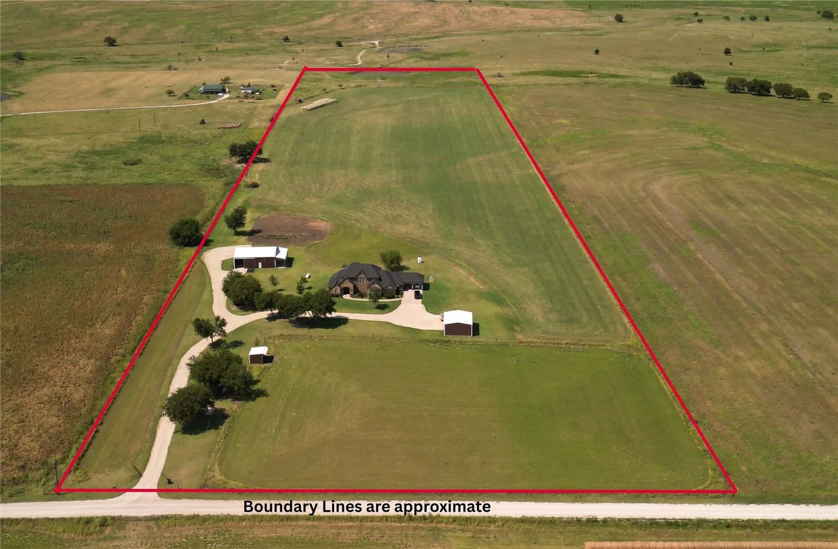Dreaming of country living without giving up access to the city? This 25-acre property is the best of both worlds. The custom-built home offers over 3,600 sq. ft. of thoughtfully designed space, including an oversized laundry-mud room, an upstairs flex room, and unique features you won’t find anywhere else. Love to entertain? The open-concept kitchen flows into a spacious dining area and outdoor gathering space—perfect for hosting friends, family, or the whole crew after a day on the ranch. Every detail was designed with comfort and convenience in mind—extra storage closets, a moveable island in the laundry room (ideal for folding, crafts, or projects), the pantry in the kitchen doubles as a tornado shelter (rated for an EF-4), a built-in office, a built-in ironing station in the primary closet, and even dual toilets in the primary bath. The two secondary bedrooms share a Jack & Jill bath for added function. Outside, you’ll find a charming attached 2-car carport, a 3-stall barn with covered trailer parking, and a large shop with concrete floors and electricity. With 24 acres of open space, there’s plenty of room for horses, cattle, or any ranch dream you want to bring to life. This property is ready for your next chapter—come experience it for yourself!