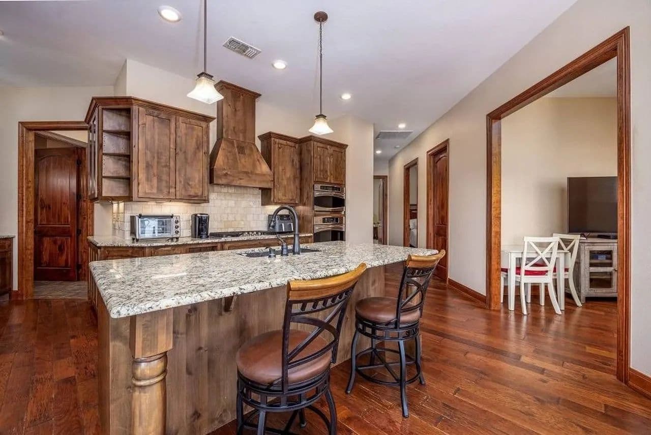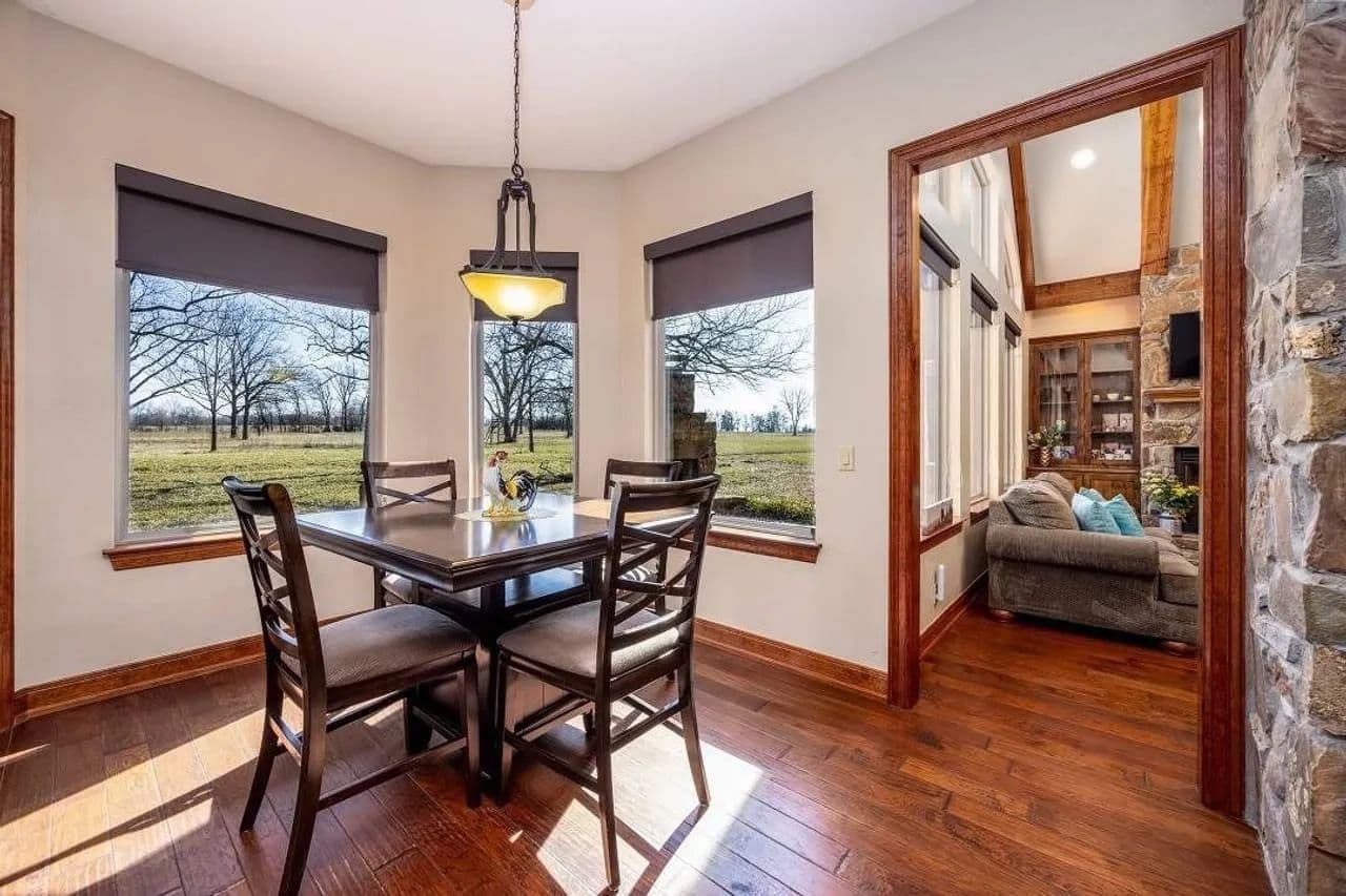 trees,lush grazing ground, and exceptional craftsmanship throughout, this property is ideal for those seeking a true luxury ranch lifestyle. The home features gorgeous wood florring ,granite countertops , vaulted