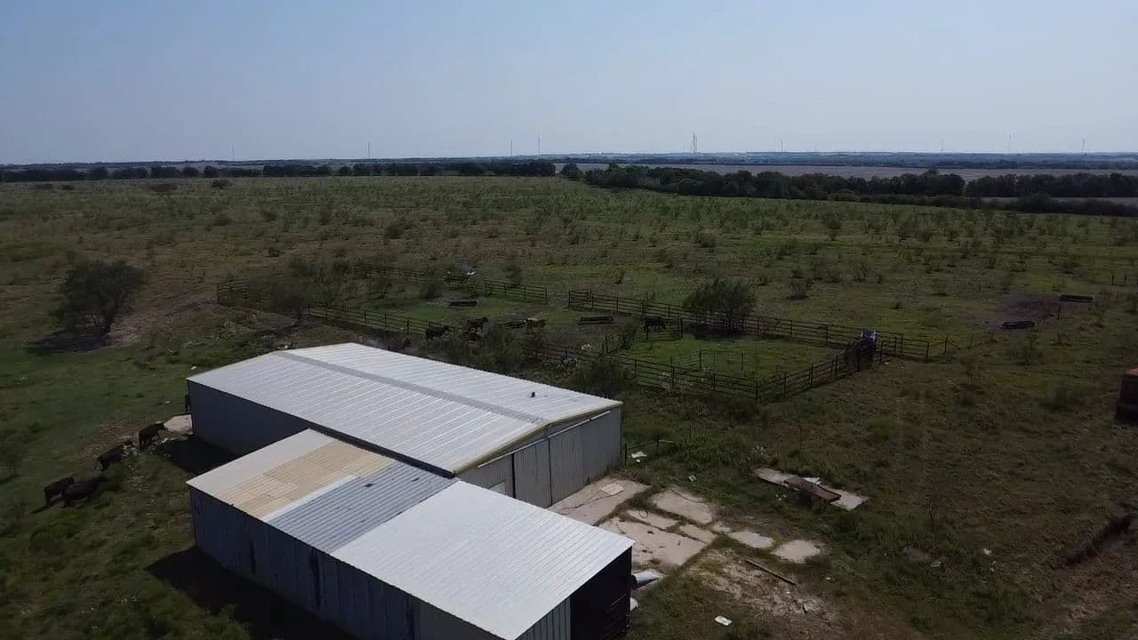 101.6 acres with strong native and improved grasses, gentle elevation changes, and views of the Central Texas prairie. Improvements include a single-wide mobile home, the shell of a concrete bunker-style house, a large metal hay barn, and stock tanks. A great property for grazing livestock, a homestead, or future building site.