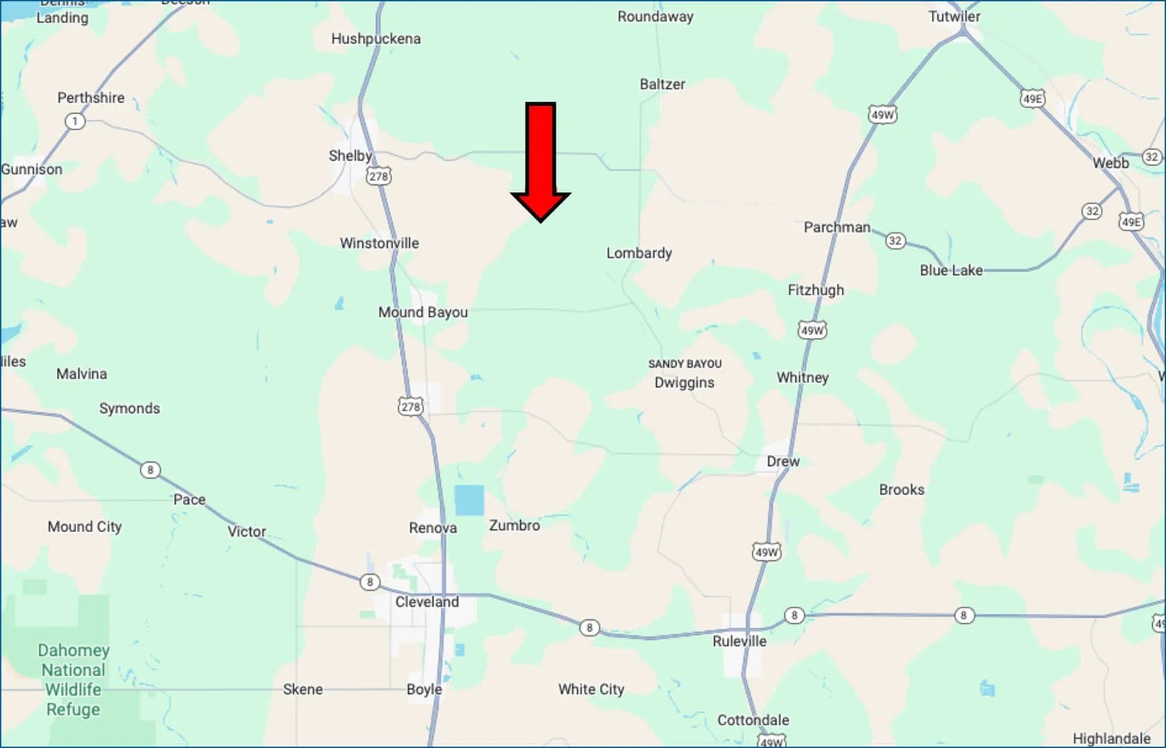 Search Land - 116 Acres with a Camp House in Bolivar County in Mound Bayou, MS