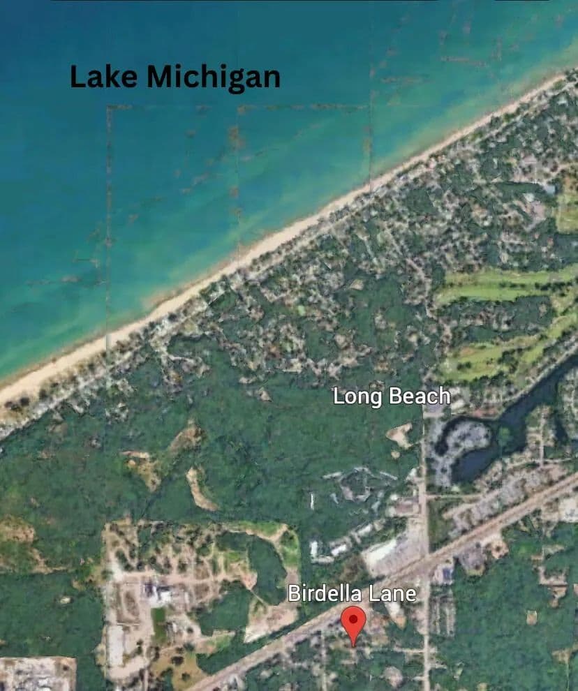Bordering the future Singing Sands Bike Trail, these two wooded lots offer direct access to scenic biking and walking paths stretching from Illinois to Michigan. Located on a quiet dead-end street just minutes from Lake Michigan, the property is ideal for a dream home, vacation retreat, or investment. Enjoy privacy among mature trees while remaining close to beaches, shopping, and dining.