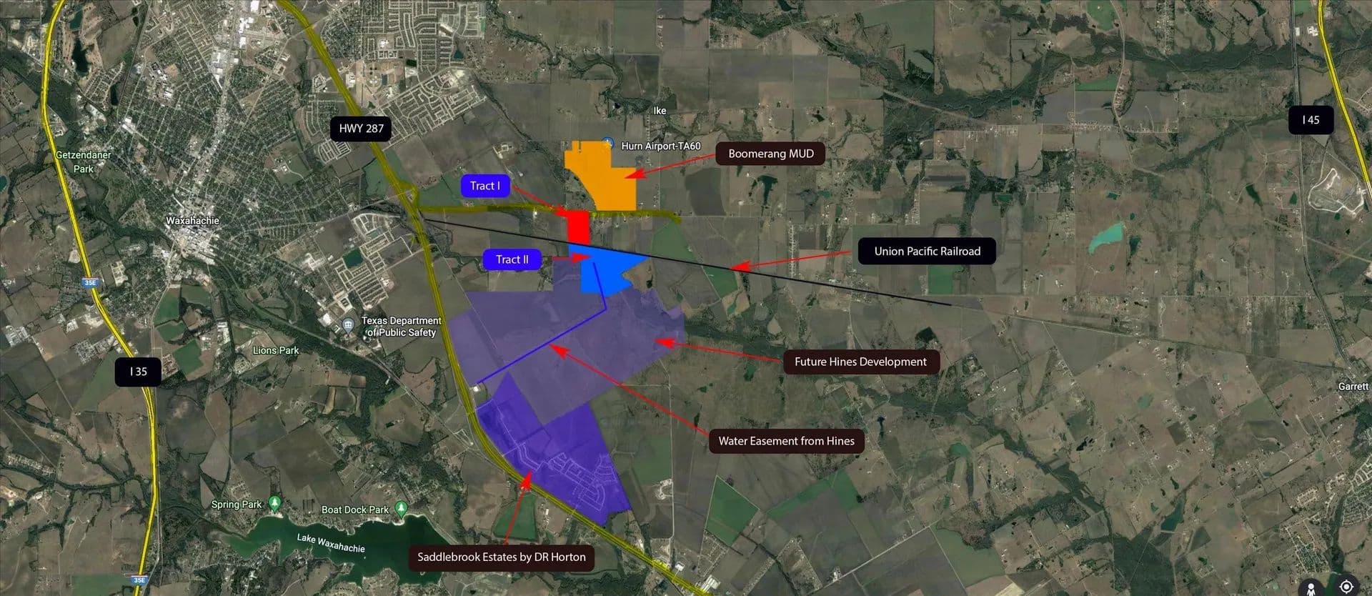 *Strategically Positioned for Growth* This property is surrounded by significant upcoming developments from industry leaders such as Hines and D.R. Horton, reinforcing its future value and strategic importance in the areas growth trajectory. A water easement with the adjacent Hines development is in place on Tract 2, making integration into surrounding utilities seamless. *Utilities & Infrastructure*City water, city sewer, and electric services are available, significantly reducing development start-up costs. Southern Pacific Railroad runs east-west between the tracts, offering potential for logistics, industrial, or distribution-related uses. Agricultural Exemption (Ag Exempt) currently in place, providing favorable holding costs for investors. *Additional Highlights* Seller is open to subdividing the property for smaller parcels or phased developments. A recent survey is available and ready for review. The land is outside city zoning, offering flexibility for a wide range of future uses, including residential communities, industrial parks, or commercial hubs.