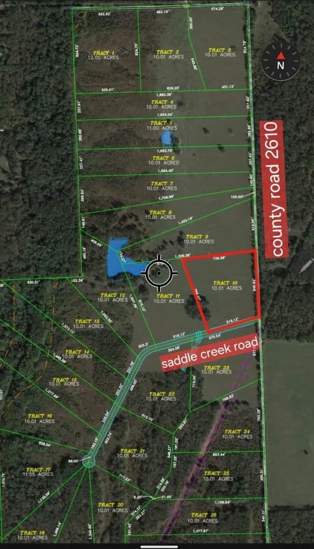 Build Your Dream Estate on 10 Picturesque Acres in Saddle Creek Ranch! Discover the endless possibilities that await on this stunning 10-acre tract nestled in the desirable Saddle Creek Ranch community. Whether you're looking to create your own private retreat, family homestead, or a weekend escape from the city, this property offers the perfect canvas for your dream home. Currently AG exempt with a hay and grazing lease in place, this land not only provides a serene country lifestyle but also offers the benefit of lower property taxes. Enjoy wide open spaces and the peaceful beauty of the Texas countryside – ideal for those seeking tranquility, privacy, and room to grow. With thoughtful restrictions to preserve the charm of the community, the property requires a minimum 1,200 square foot site-built home and does not allow mobile homes – ensuring lasting value and aesthetic appeal for years to come.Saddle Creek Ranch is a growing rural community offering a blend of ranch-style living and modern convenience, just a short drive from nearby towns and major roadways. Whether you envision a custom farmhouse, hobby ranch, or simply a quiet place to unwind, this property delivers the freedom and flexibility to bring your vision to life.