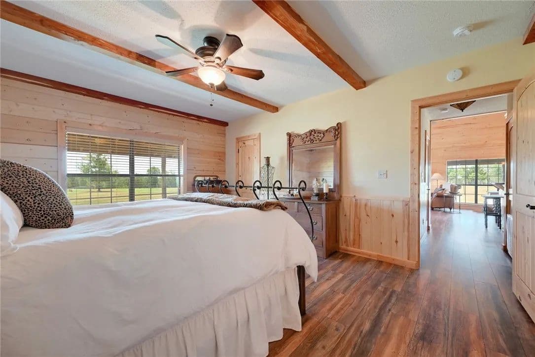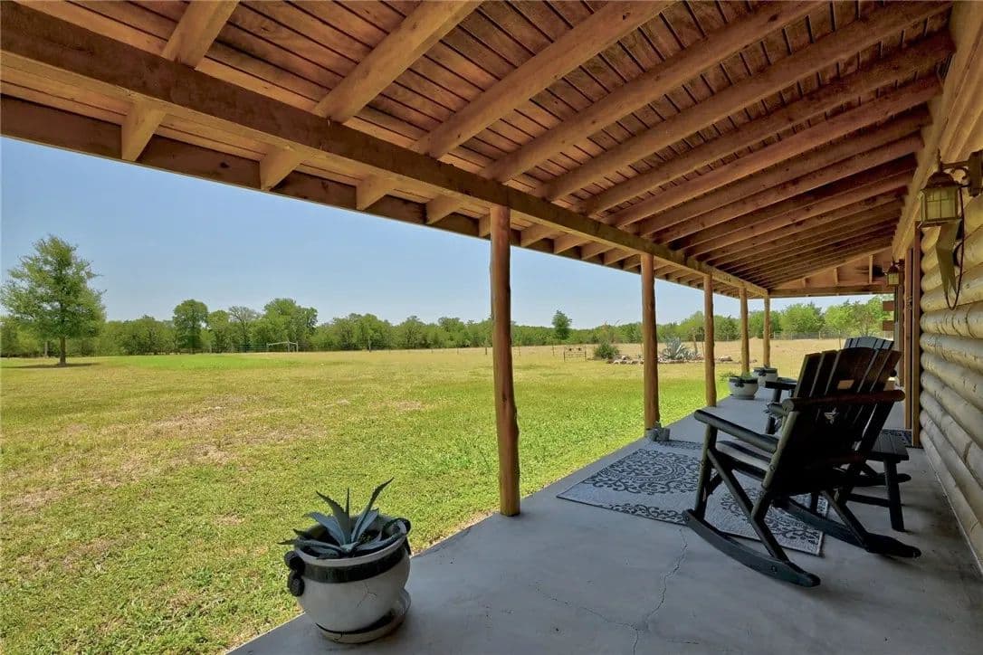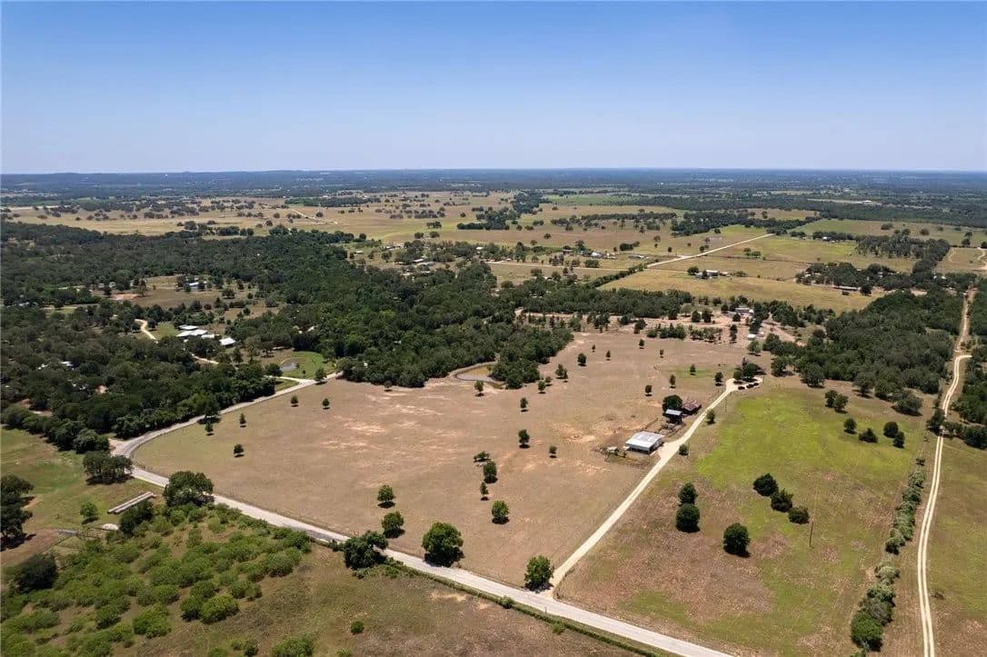 30.86 sprawling Acres featuring a stunning, custom-built, log-home…nestled atop a gentle hill offering miles of unobstructed views. Loaded with tasteful details, custom accents & antique finishes throughout…this home is truly one of a kind. Tucked back off the the main road w/gated access for added privacy & security. Property is fully fenced, w/2 separate working pastures, ideal for rotational grazing. A gorgeous stock tank surrounded by mature trees, offers a nice reprieve from the Texas heat. Featuring a well-thought floorpan & an open concept w/ vaulted ceilings & ample windows allowing an abundance of natural light. Breathtaking views can be enjoyed from nearly every room or enjoyed from the expansive wrap-a-round porch. The primary suite & spa-like bath are situated on the 1st floor, tucked away from the common areas. There is an addtl 1/2 bath down for guests. The upstairs features an oversized bedroom & full bath w/a nice loft/flex space. The property is fully fenced & benefits from the current AG exemption. Open, rolling fields attract many birds, deer, and turkey. Sections of heavily wooded, mature forest remain offering a nice mix of post oaks, elms, cedars, pecans, black walnut & various understory trees, amongst an expansive open prairie. Years of hard work, dedication & diligence are evident throughout the property. Both pastures were responsibly & thoughtfully cleared, seeded & fenced with several heritage oaks, elms & pecans left standing tall throughout. Property also has 3 outbuildings loaded with functionality & potential incl. a recently built 30x40 (12000 SQFT) metal shop w/roll up doors & an attached covered RV pad. 2. A large barn loaded with potential, easily converted to an expansive indoor/outdoor entertaining space. 3. A 2-story, bunk-house, fitted with a loft, balcony & electricity could easily be reclaimed to serve as guest quarters. Easy commute to Circuit of The Americas, ABIA, Austin, Bastrop, and TESLA.