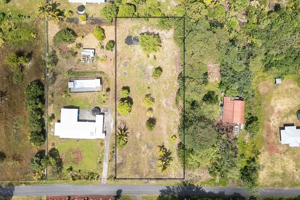 PRICE REDUCED! Cleared one acre lot with fruit trees located in Hawaiian Paradise Park. Fenced on three sides and ready to build or establish your orchard. Fruit trees include mango, coconut, mountain apple, avocado and guava. Conveniently located towards dead end of the street off Maku'u Drive. Staking report on file. Seller will not pay for updated staking report or survey. Per HelCo, no SSPP.