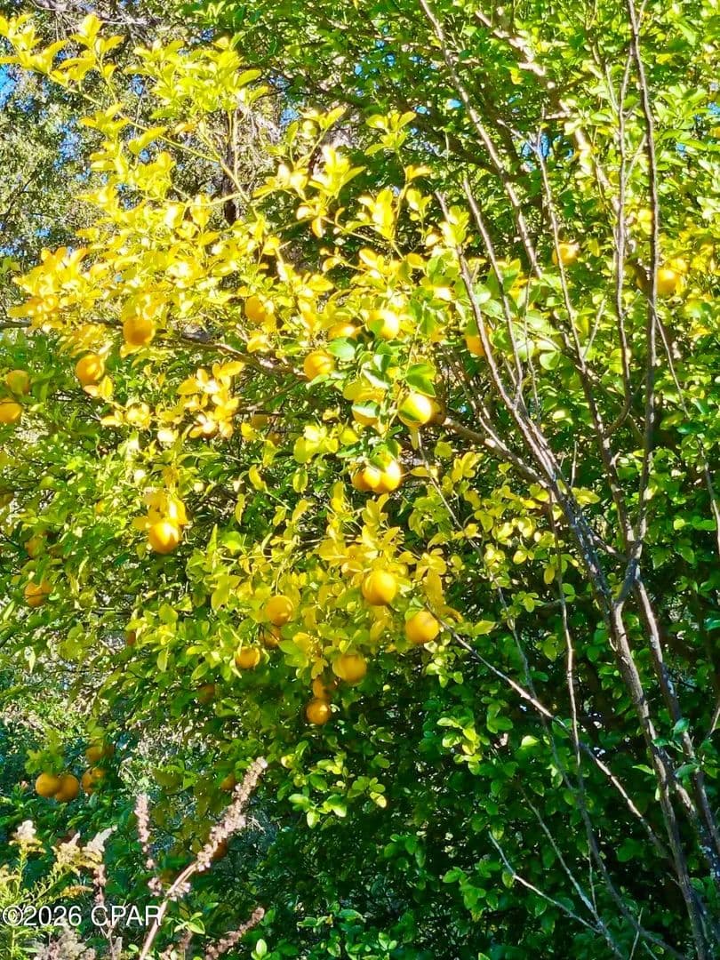 The land features an abundance of mature fruit trees and plants, including citrus, persimmons, plums, blueberries, and grape vines — perfect for those who appreciate natural beauty and homegrown harvests. The property is also a prime hunting location, with frequent sightings of deer, turkey, and other wildlife.