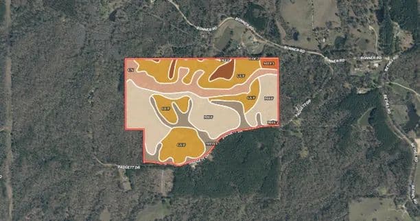 The land features a beautiful mix of mid- to mature hardwoods, including large oak trees along the interior roads and in the bottoms, as well as scattered mature pine trees. A well-established internal road system provides excellent access throughout the property, leading to several proven hunting locations that are ideal for deer, turkey, and squirrel.