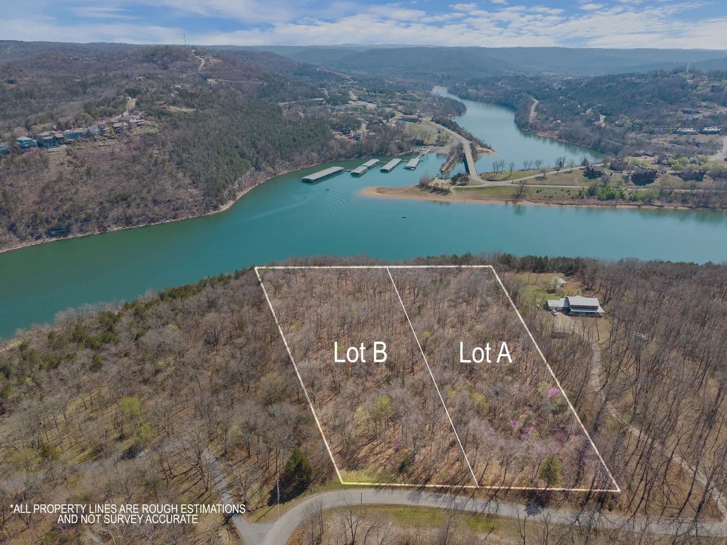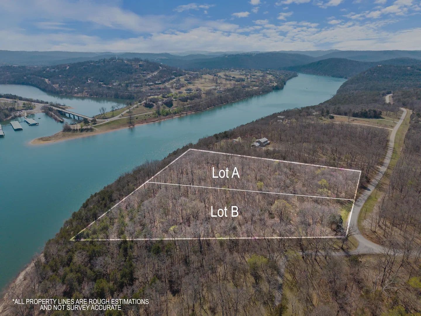 Discover the perfect blend of seclusion and natural beauty with this breathtaking 6.03-acre lakefront property in Oaks Landing, an exclusive subdivision nestled between Table Rock Lake and the Mark Twain National Forest. This pristine lot features two spacious parcels, gently sloping toward the sparkling waters, offering breathtaking views of the lake and the majestic Ozark Mountains with 442 ft of lake front to enjoy. Towering mature hardwoods provide both privacy and a stunning seasonal display of autumn colors and spring blooms. Enjoy easy lake access via the private subdivision-owned swim/fishing dock, or opt for a 28' x 10' boat slip available for purchase at $65,000 via a bill of sale. Whether you're seeking adventure or relaxation, this is your rare opportunity to own a slice of paradise—just 30 minutes from Eureka Springs and under an hour from Branson or Rogers/Bentonville. Schedule your tour today and start building your dream lakefront retreat!