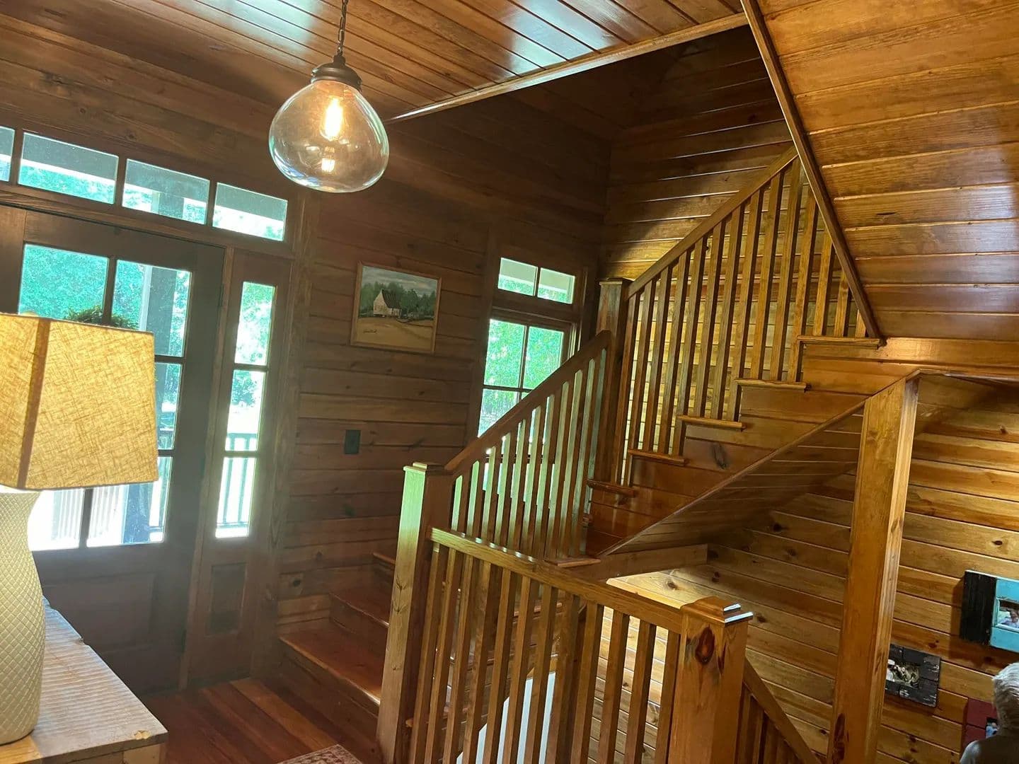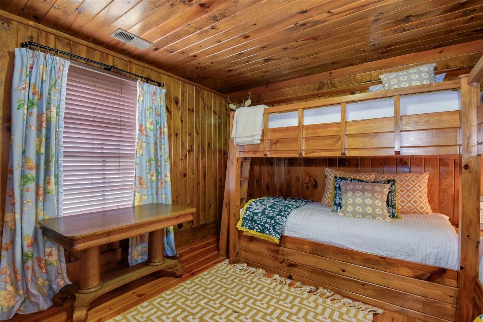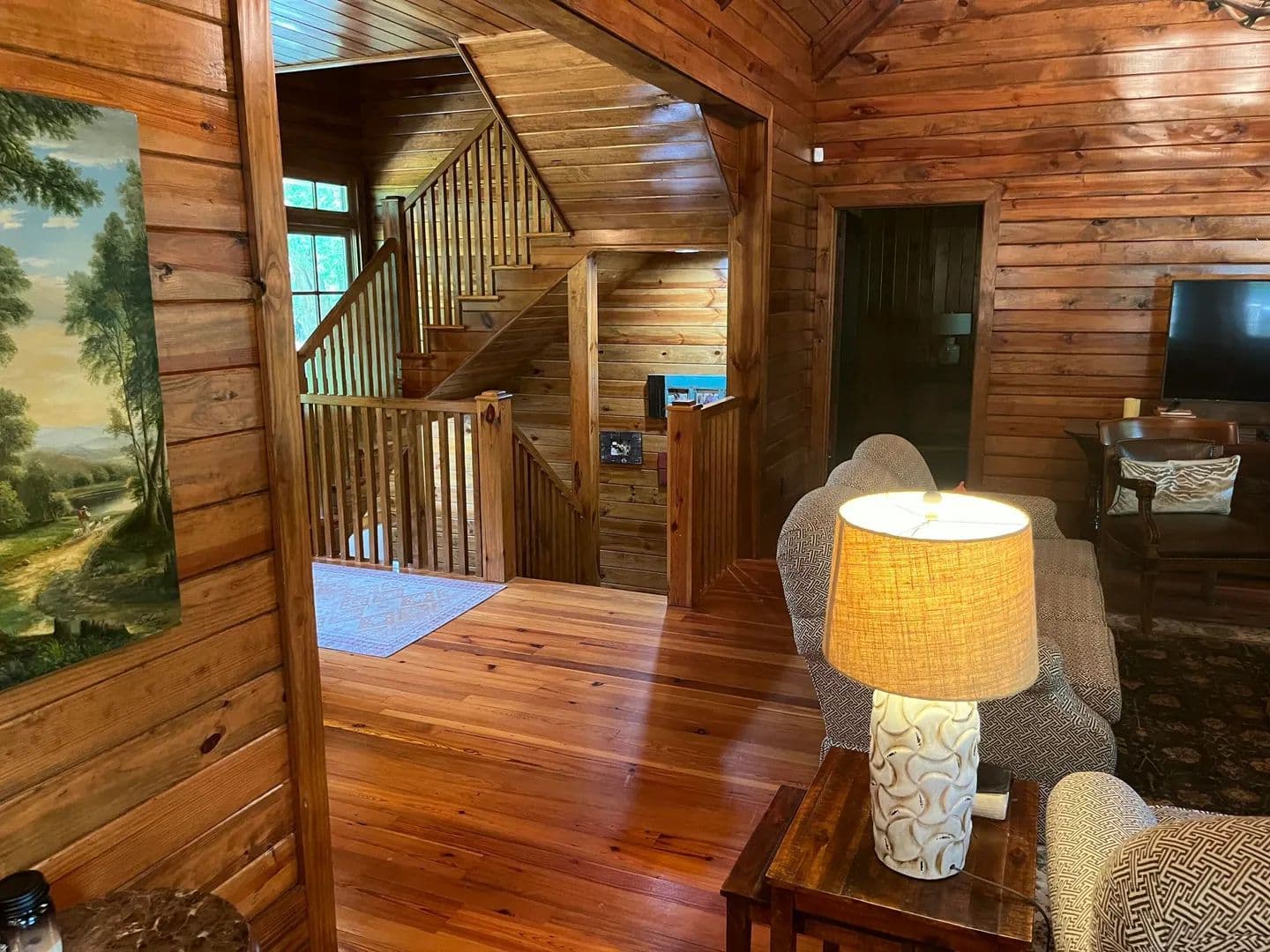 Built in 2011, this three-story retreat blends rustic charm with modern comfort, featuring hearty pine walls and well-maintained hardwood floors throughout.