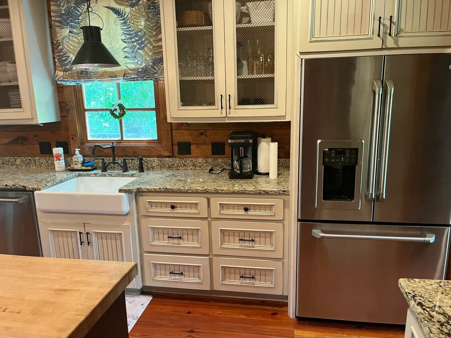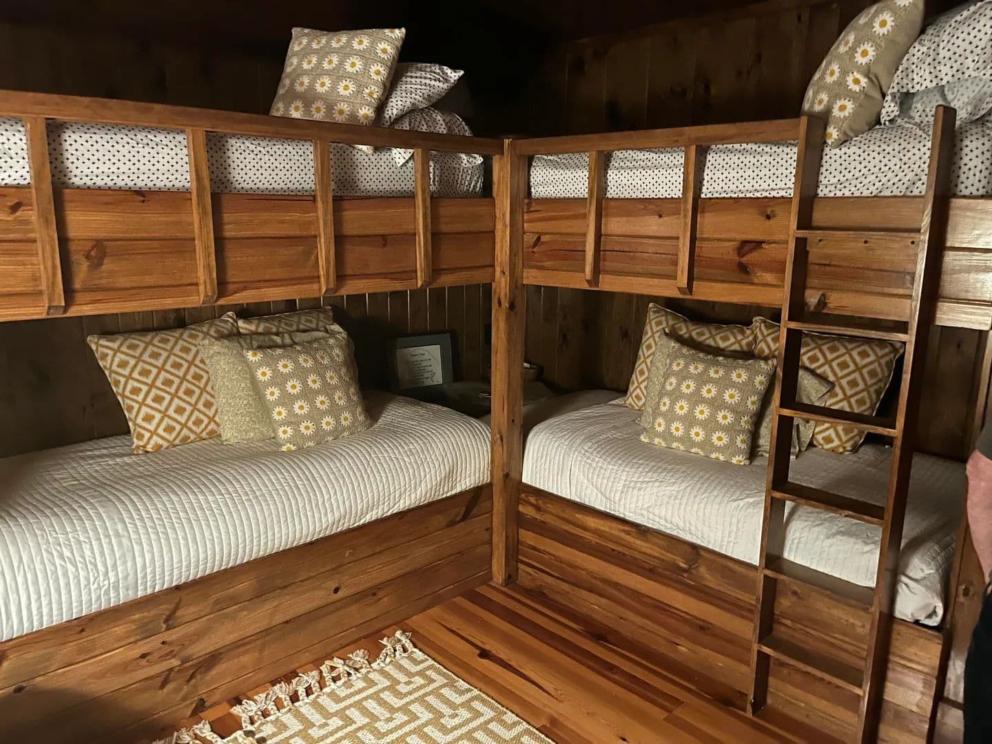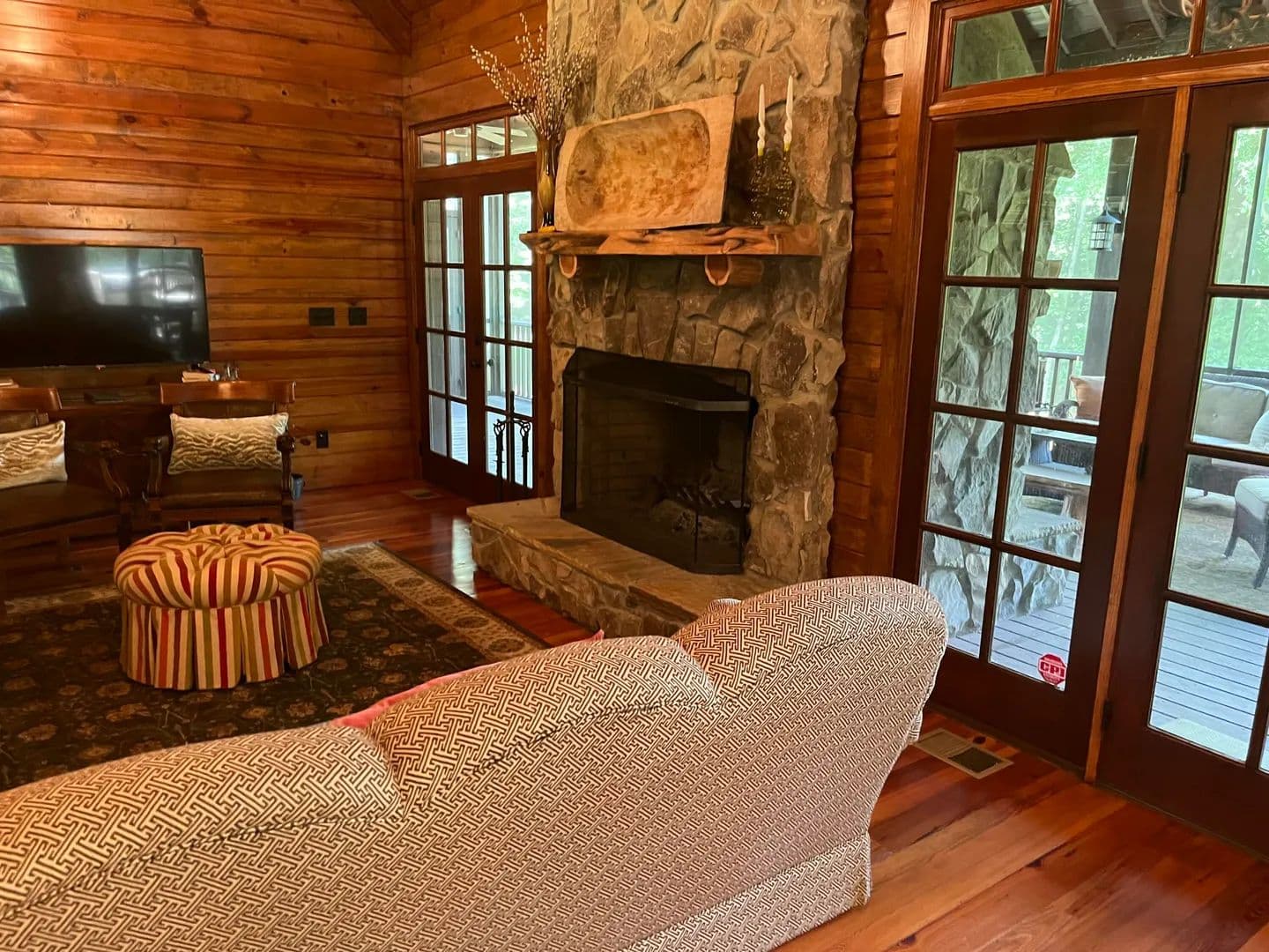 Built in 2011, this three-story retreat blends rustic charm with modern comfort, featuring hearty pine walls and well-maintained hardwood floors throughout.