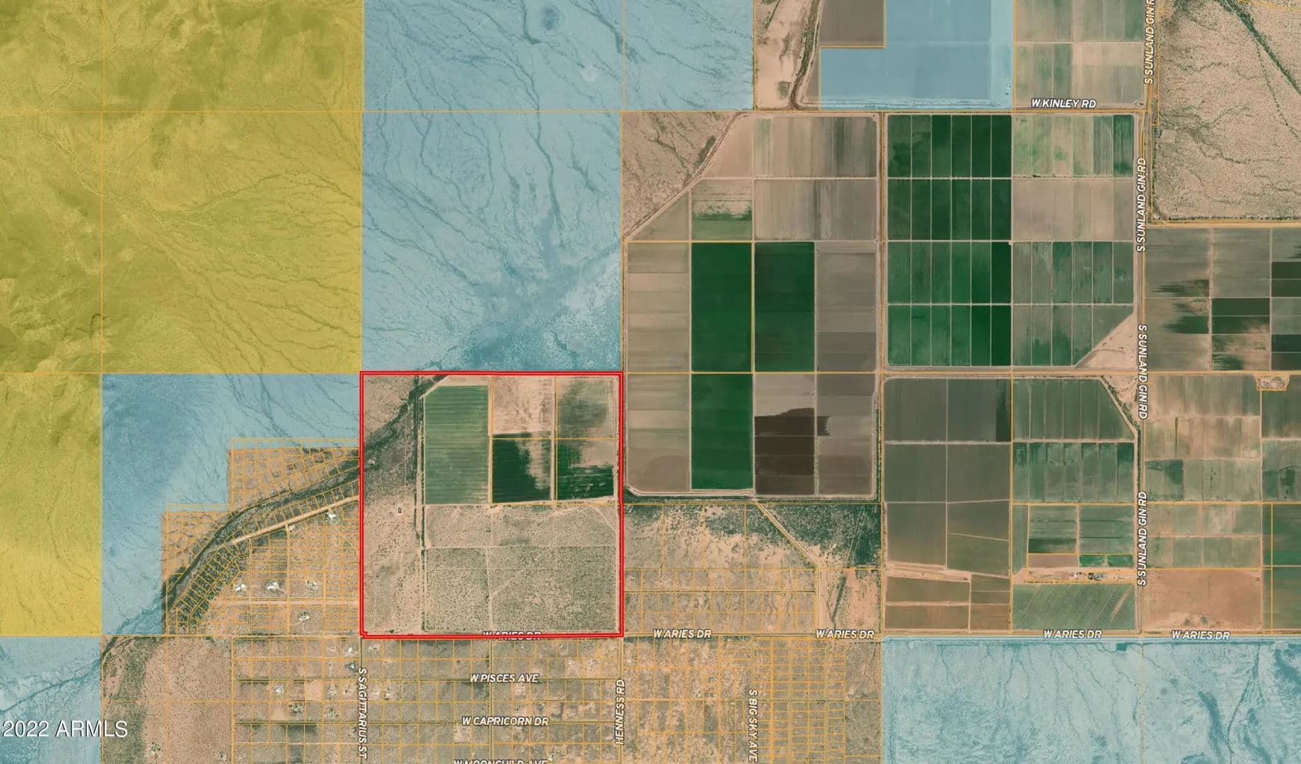 Farm and Desert Ranch for your consideration. Approximately 240 acres irrigated farm ground and 400 acres of desert ground. Located just over 20 miles from I-10 with access to Phoenix or Tucson. Located across the street from the suburban ranchette community of Silverbell Estates. Endless opportunity with this piece. Take a look today. Includes 4 other parcels 409-01-003E,F,G,H