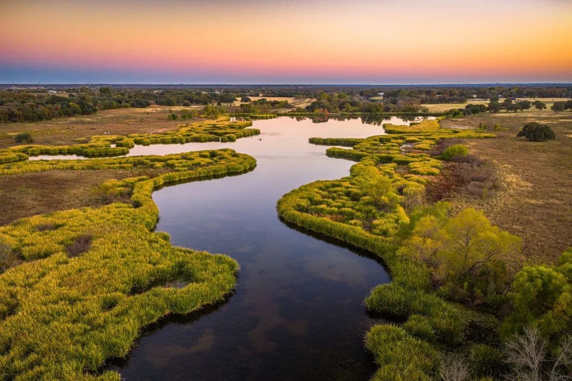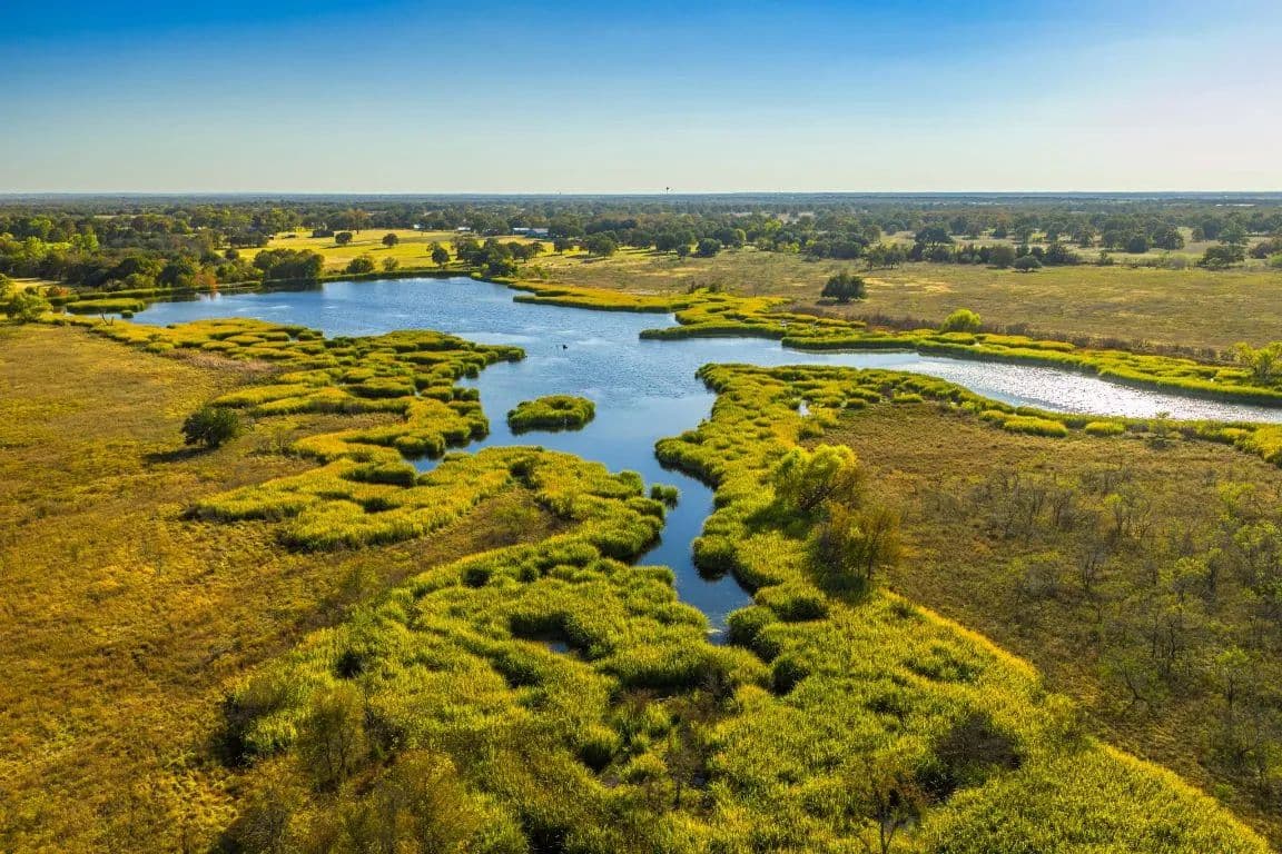 Patten Springs Ranch is a rare large acreage offering in Central Texas, defined by exceptional water, diverse native habitat, and one of the most impressive spring-fed lakes currently on the market. Located in Aquilla, Texas, the ranch spans 843 acres and features a stunning 13-acre crystal-clear spring-fed lake, an additional 5-acre lake, and 10 stock tanks, providing outstanding water distribution across the property. The land offers a balanced mix of open pasture, rolling terrain, and mature hardwood cover, making it ideal for family recreation, hunting and fishing, cattle operations, and long term land investment. Wildlife is abundant throughout the ranch, including whitetail deer, feral pigs, Rio Grande turkey, dove, and waterfowl, with ducks and geese heavily utilizing the lakes and ponds. A unique feature of the property is the presence of river otters in the main lake, a rare sight in Texas and a strong indicator of a healthy ecosystem. The ranch is exceptionally well watered with multiple springs, spring fed surface water, and consistent flow rarely found on a property of this size in Central Texas. Patten Springs Ranch is conveniently located just 25 minutes from Waco, approximately one hour and fourteen minutes to DFW, two hours to Austin, and roughly three hours to Houston and San Antonio, offering excellent accessibility while still providing privacy and seclusion. Oncor is the electric provider in the area, and the property features approximately 7,700 feet of frontage on FM 933 and 5,500 feet of frontage on Patton Lake Road.