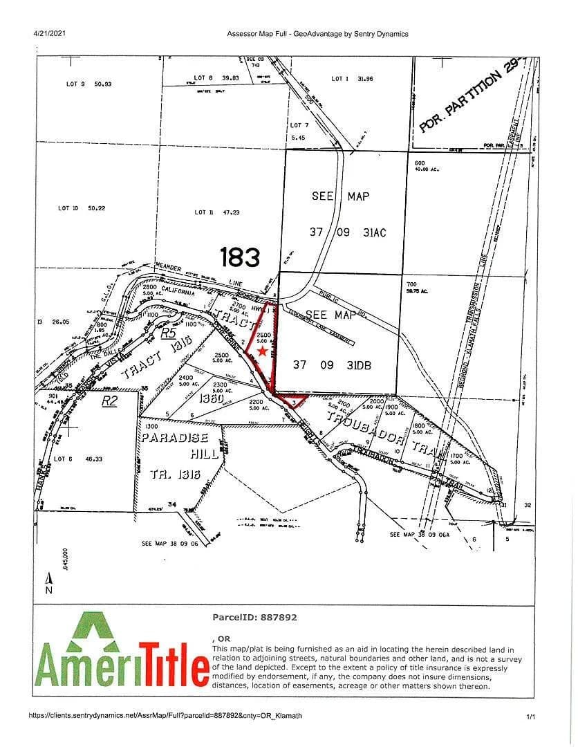 5-acre hillside lot in the northern section of Paradise Hill Subdivision, a gated community just north of Klamath Falls, with a beautiful view of Klamath Lake! Annual HOA dues were $ 438 for the 2022 year.