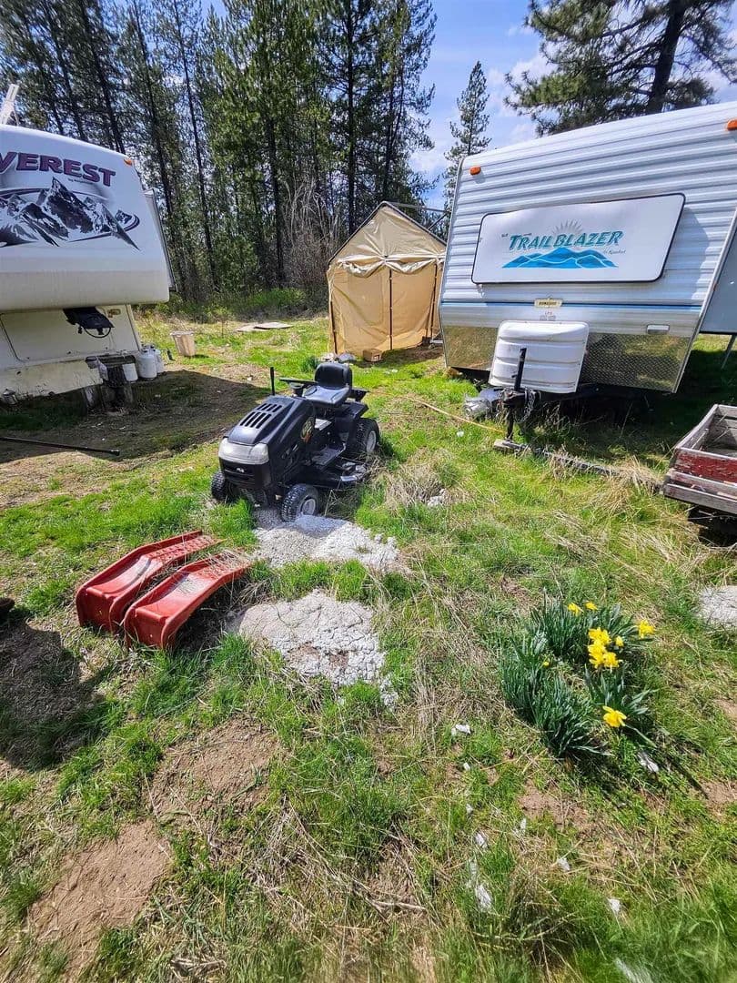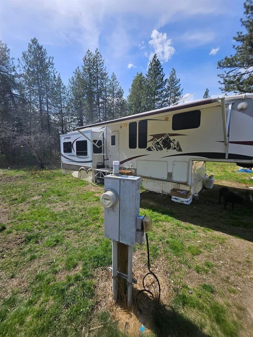 This is an amazing opportunity to escape from the hustle and bustle! The property spans 10 acres and has power, water, and septic systems already in place, making it an ideal location for various purposes. This beautifully wooded land is fully customizable to suit your preferences and needs. Whether looking for a recreational space, a weekend retreat, or a place to build your dream home, this property offers endless possibilities. The front half of the property is level, while the back portion offers a gentle incline, providing elevated views of the surroundings. Conveniently located just 3.5 miles from town, you'll have easy access to all the amenities you need. As a bonus, a 37ft 5th wheel with a King bed already connected to water, 200 amp power, sewer, and a 23ft RV with a Queen bed are included in the purchase, providing even more flexibility and options for use.