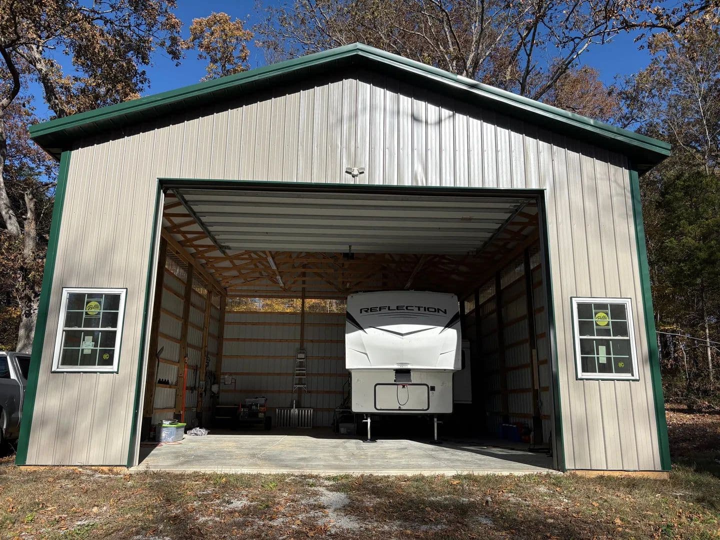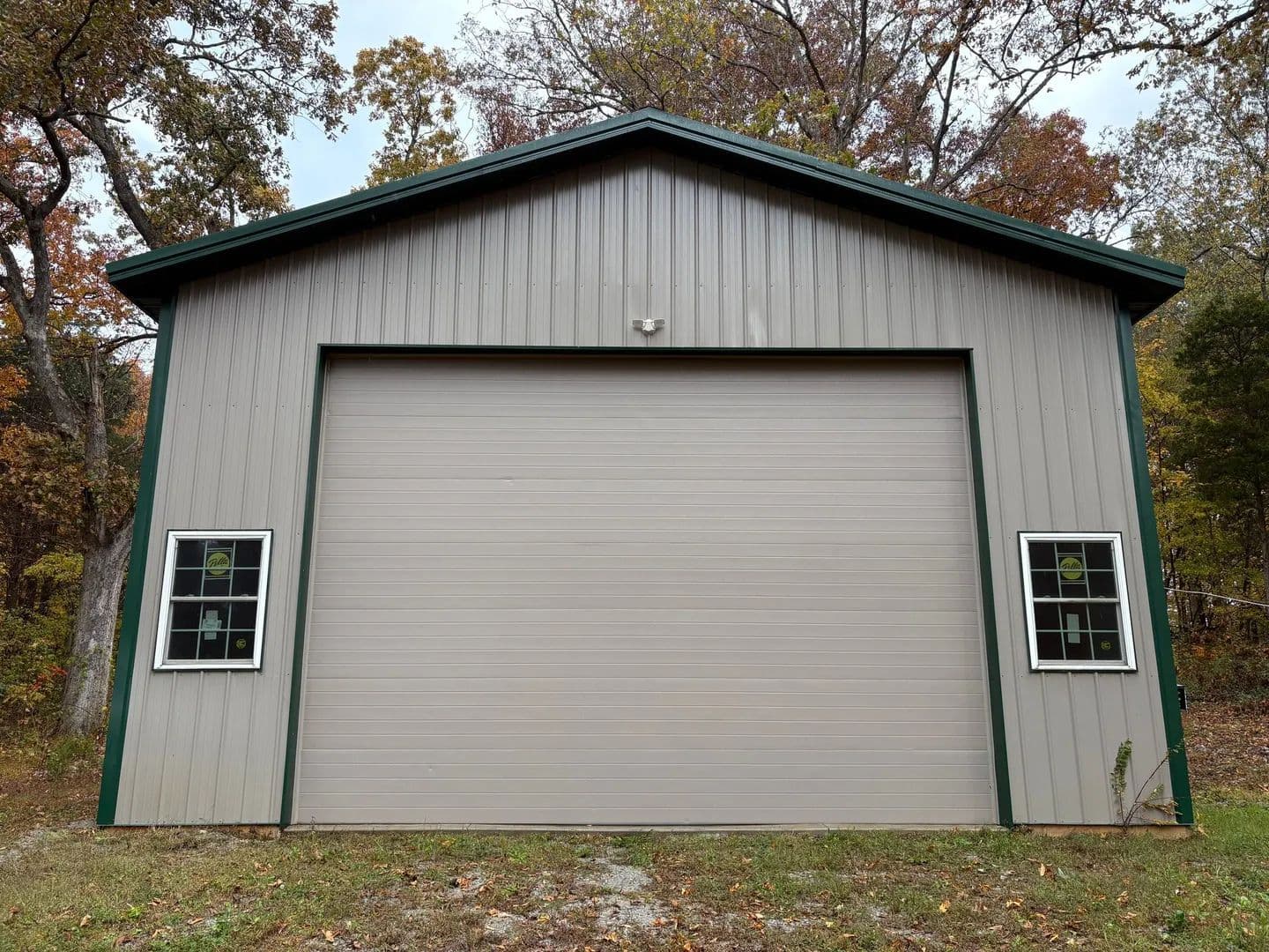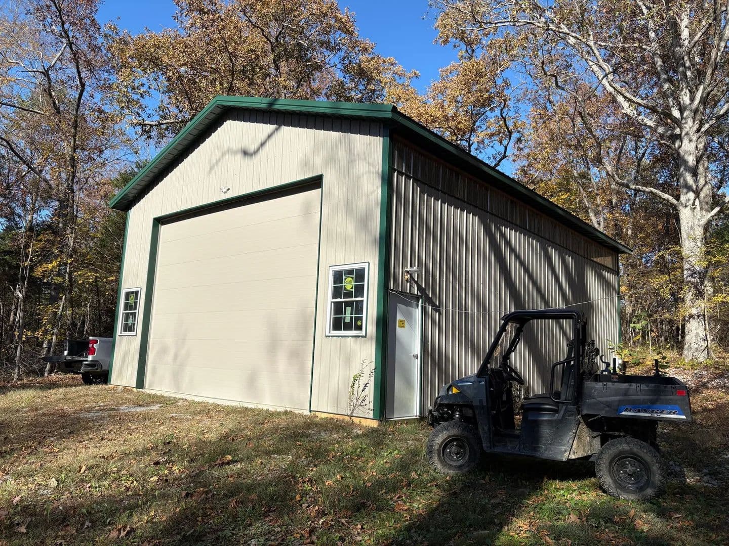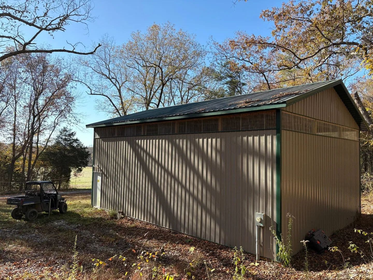 Located approximately 370 yards from the main entrance is a newer 30' x 40' pole building built in 2021. It features 200-amp electric service, lighting, an exterior water source, a concrete floor, and a 20' x 14' door suitable for an RV or large equipment. Pole barn sits on an addition .84 acre lot.