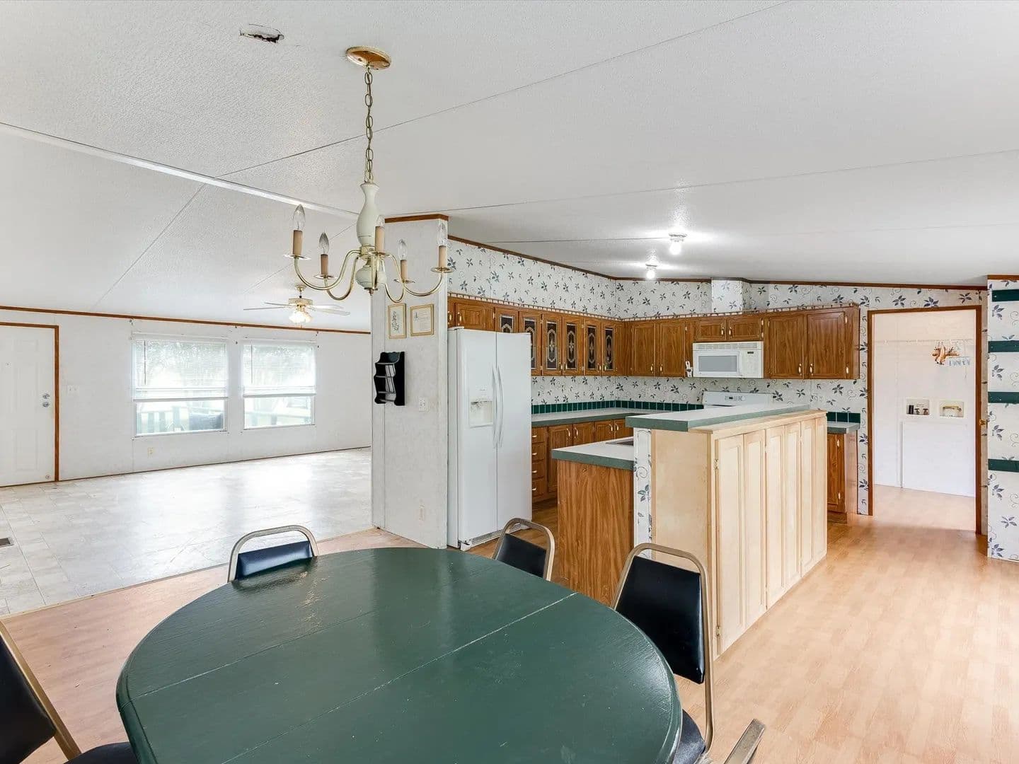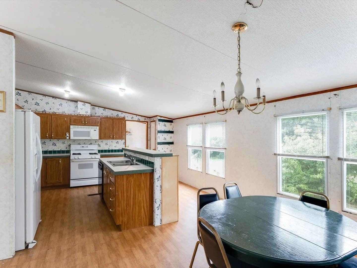 Spanning 12 acres with 2 acre easement*, this corner lot is fully fenced and cross-fenced making the ideal setup for cattle or horses. The owner fabricated cattle pens and dog runs are convenient for a business minded owner. A stock tank, nestled by mature trees, is peacefully waiting to provide water for your animals. The acreage has been utilized for hay production, validating the status of ample grazing for cattle or horses. A 2000 year model Clayton Homes, Summit Crest Model, doublewide is ready for you to personalize with your updates and TLC. Conveniently located, Three bedrooms, 2 bath home, with two living areas, is perfect for the aspiring country loving family. This property offers a peaceful and practical living space for the whole family to enjoy country living, any style you desire.