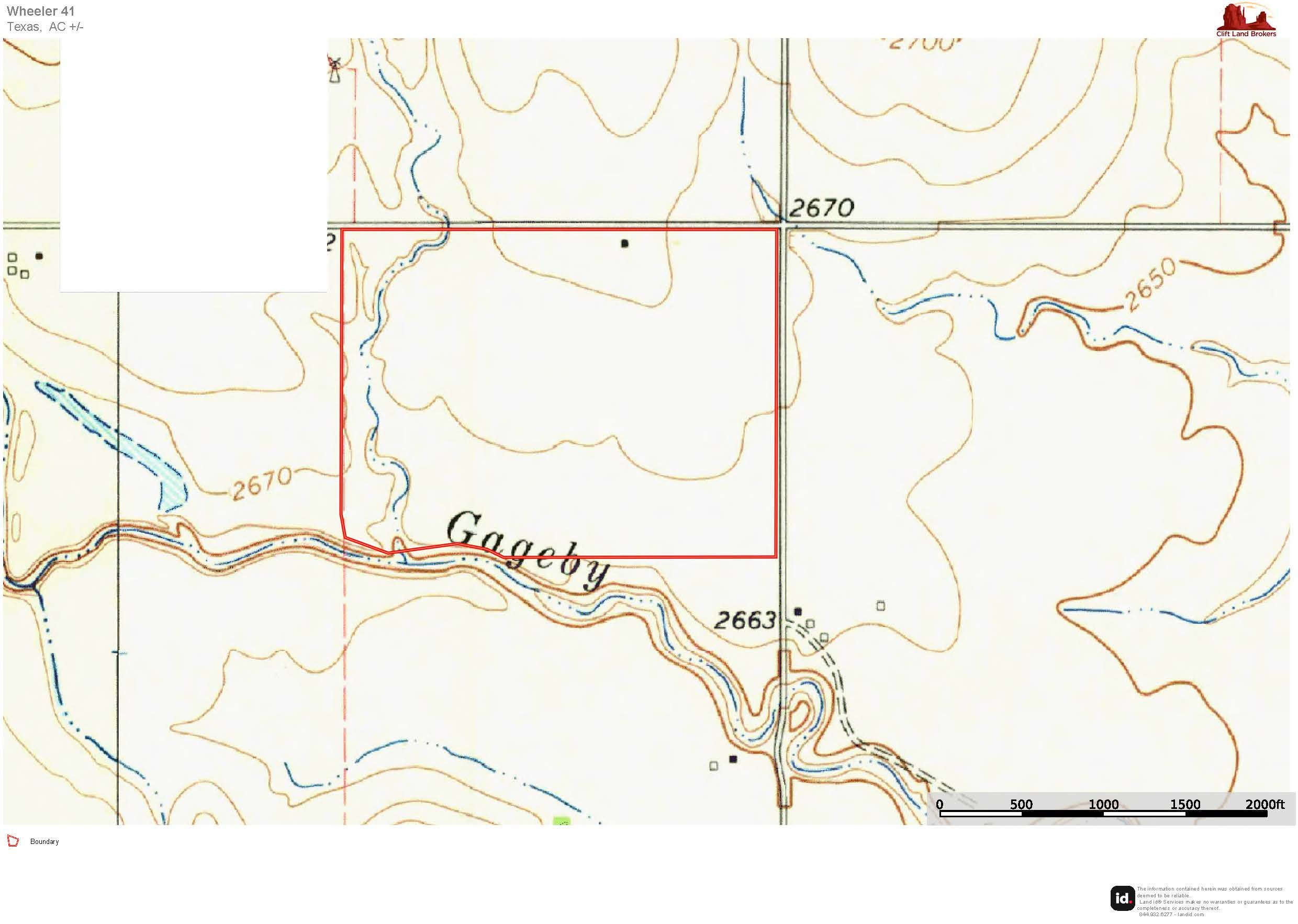 Level to sloping with mostly bluestem grass. Has a couple of terraces on to west part of the previously cultivated land. Far west side has a draw that runs north to south towards Gageby Creek. Gageby Creek is just south of the west side of the Property. Property has a livestock water well with electric submersible pump and a livestock drinking tub. Property has a gas well, but it has not been produced since 2012 according to the Texas Railroad Commission.