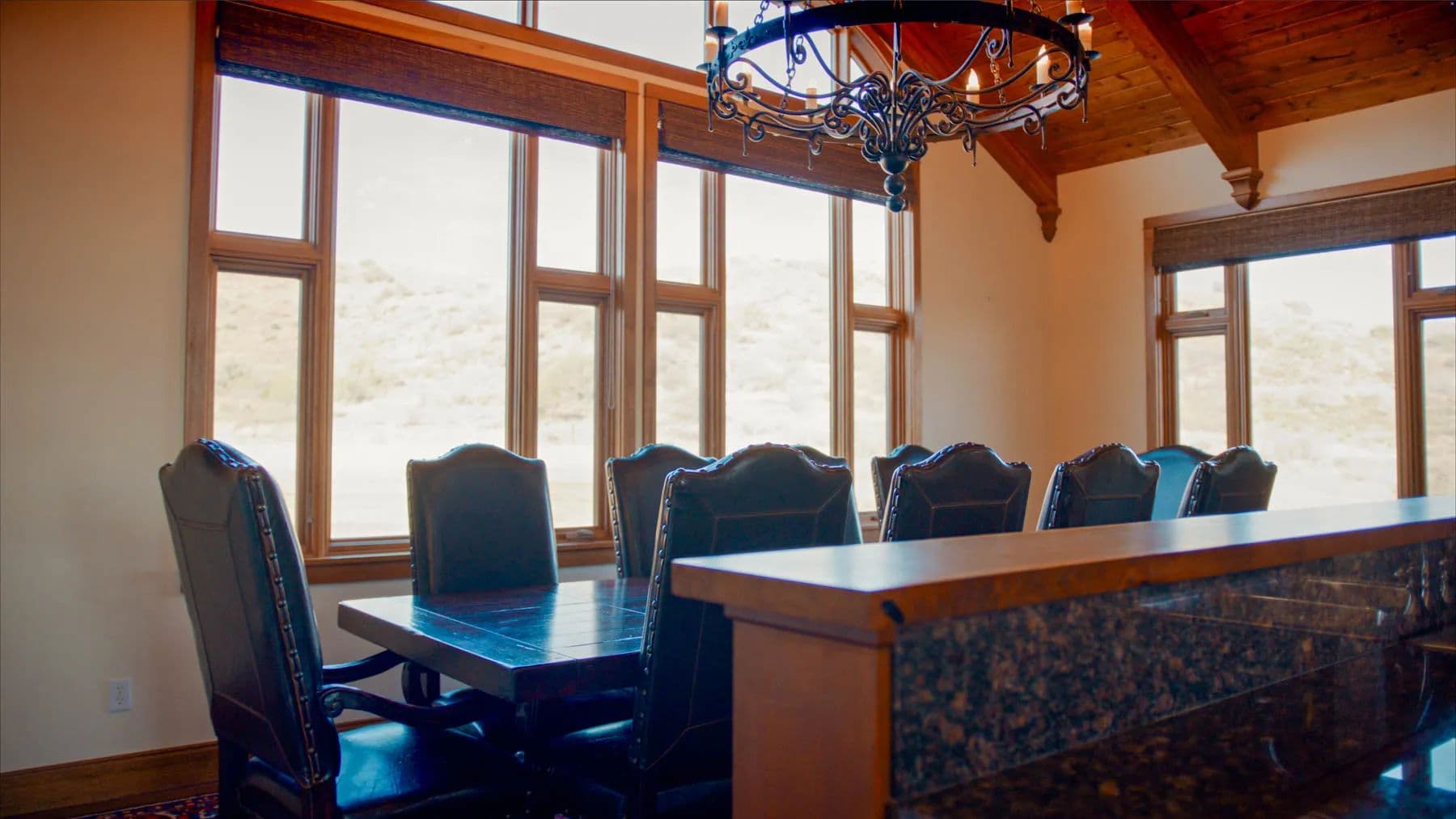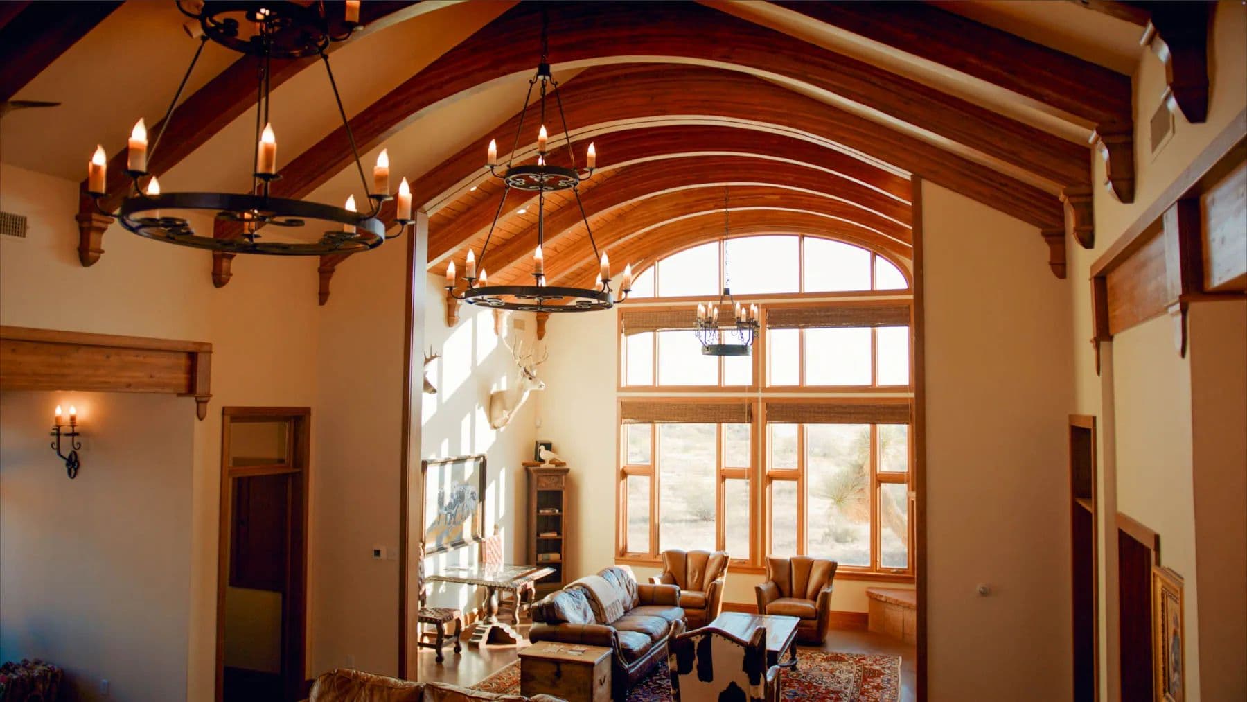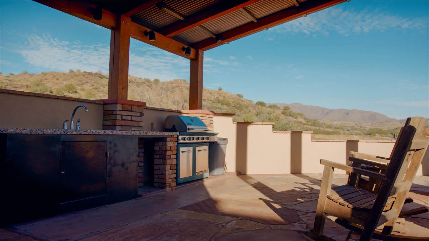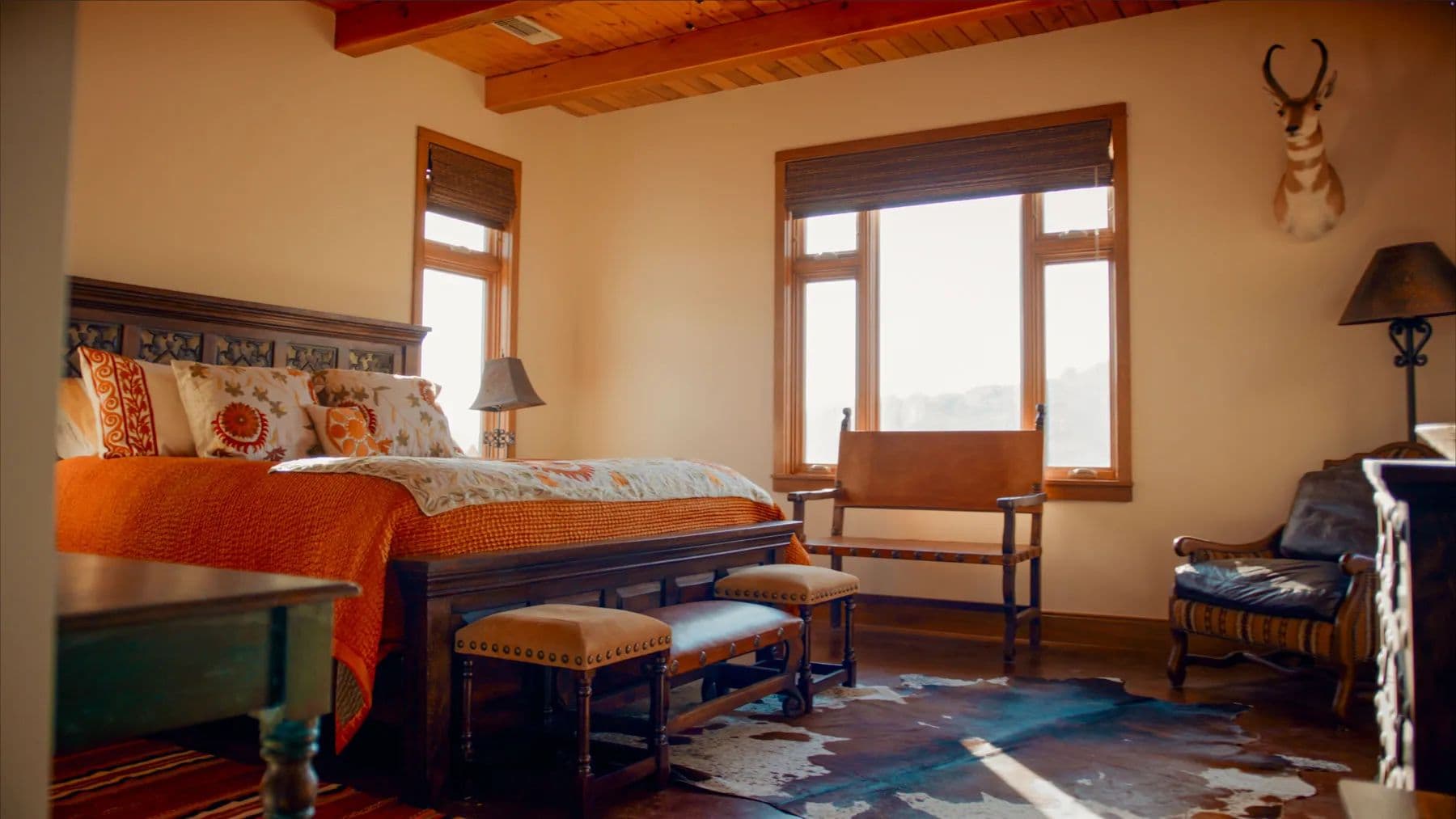 At the headquarters, "The Casa" is a finely appointed four-bedroom stucco home featuring ensuite bathrooms, radiant-heat floors, and an expansive outdoor living area with views of Cathedral Mountain. Additional structures include a manager's home, bunkhouse, office, shops, barns, and roping arena, with a secondary camp supporting operations in the southern portion of the ranch.