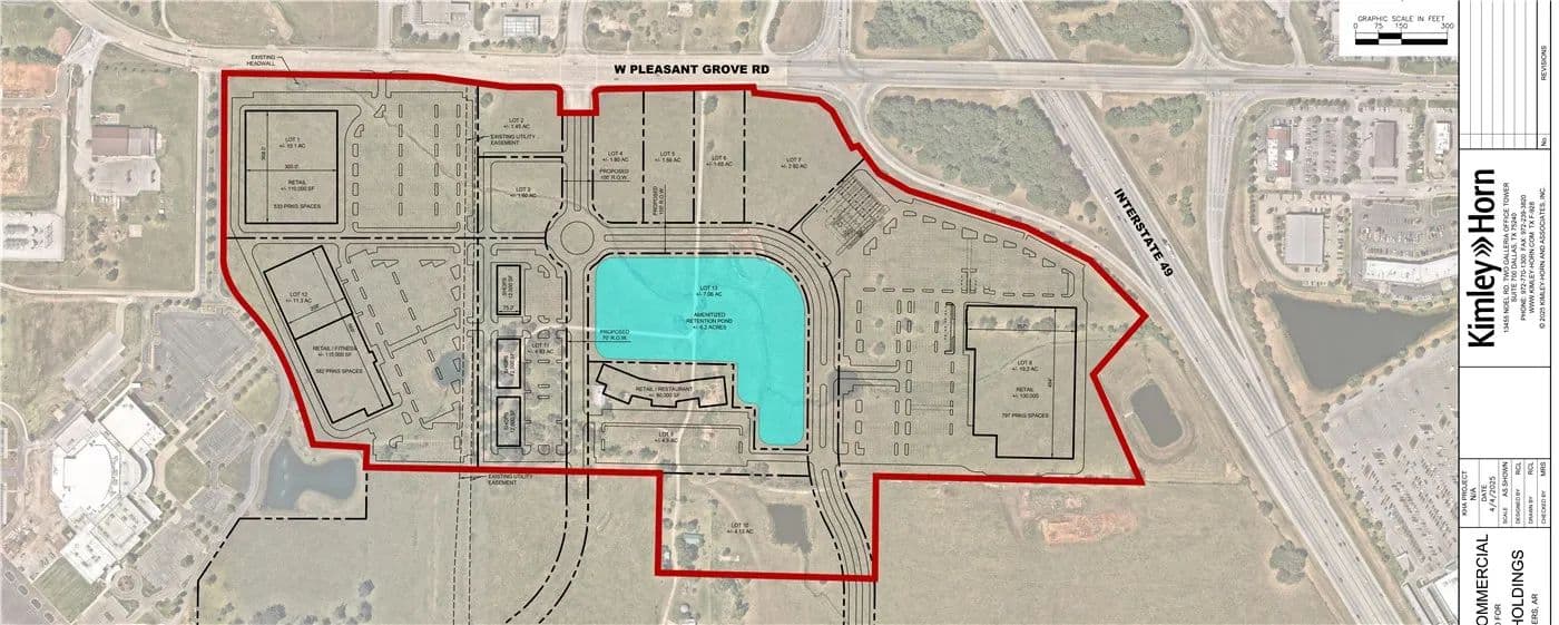 Exceptional Site Development Opportunity! +/- 79 acres of prime commercial land just off I-49 in Rogers! This highly visible site offers direct access from Exit 81 and boasts full utility access, with gas available at the street and water, sewer, electric available on site. Surrounded by top national retailers such as Walmart, Starbucks, Chick-fil-A, McDonald's, Academy, Ross, and a future Dick's Sporting Goods, the property is ideally positioned for high-traffic commercial use. Traffic counts reach +/- 110K VPD on I-49, 18K on W Pleasant Grove Rd. Ideal spot for retail, big box, grocery, and more. Just 2.5 miles from Top Golf and Walmart AMP, 10 min from the new Walmart World HQ, and less than 20 min to XNA. Additionally, University of Arkansas for Medical Sciences (UAMS) is building a new facility directly next to this site, and Schuber Mitchell Homes is set to develop +/- 520 housing units. Average household income within a 1 mile radius is +/- $170K - fueling growth and foot traffic to this dynamic location.