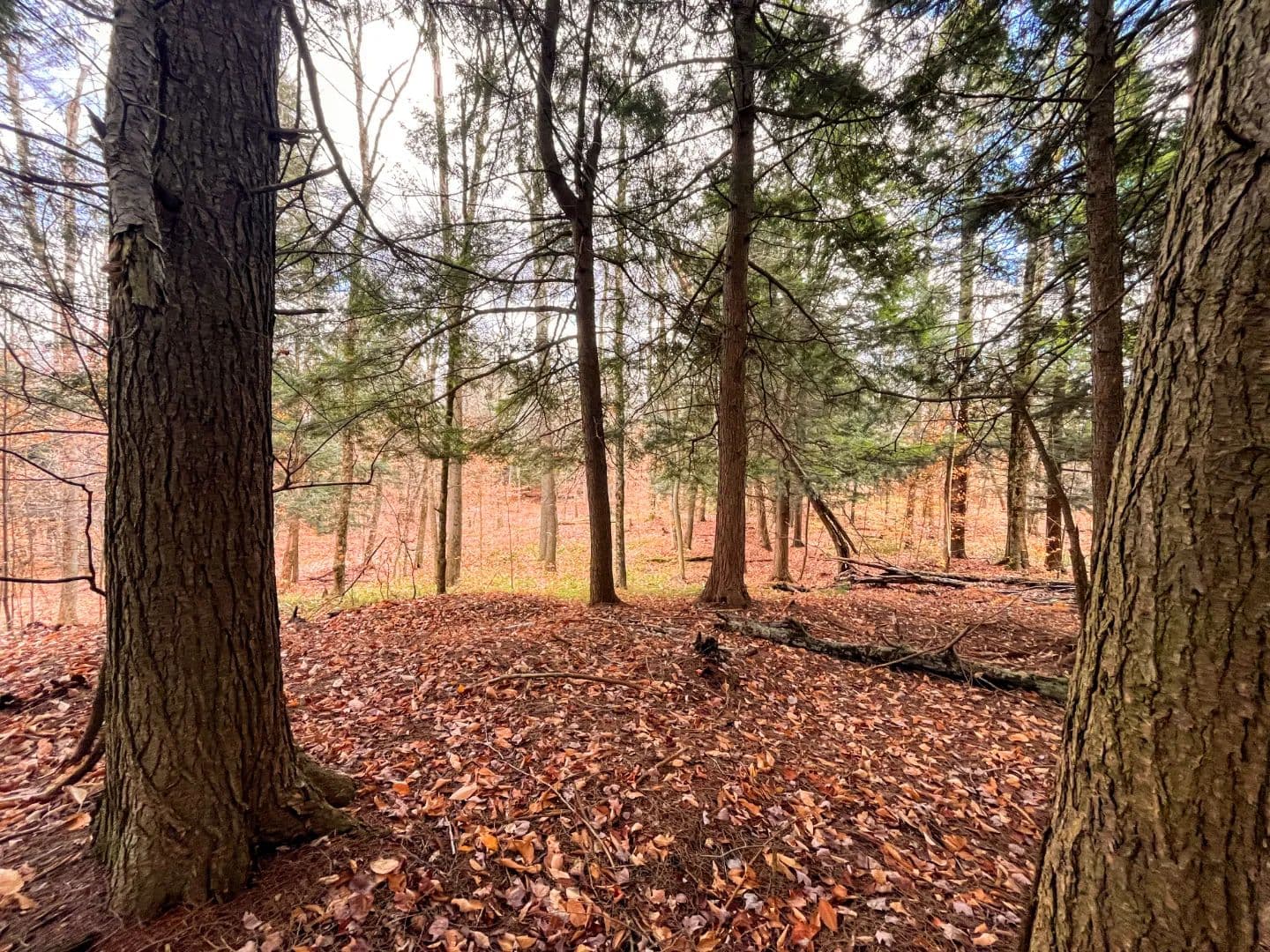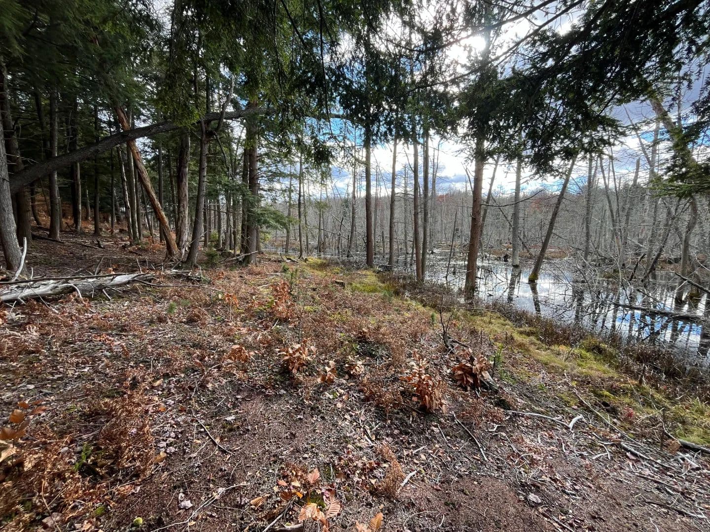 12.96-acre lot located in the Town of Russell, St. Lawrence County, NY. This heavily wooded property features rolling ridges and rock outcrops. The rear of the property borders a wilderness beaver pond with flooded timber, providing an ideal setting for observing waterfowl and other wildlife. The lot is heavily wooded with hemlock and hardwood trees, with a mix of rolling and level terrain. Access is easy with 853 feet of frontage on a year-round, paved town road. While a driveway would need to be constructed, it offers a few prime, secluded locations for a cabin, Country home, or camper site, tucked away from the road. The property consists of two surveyed lots being sold together, both with clearly marked boundary lines.