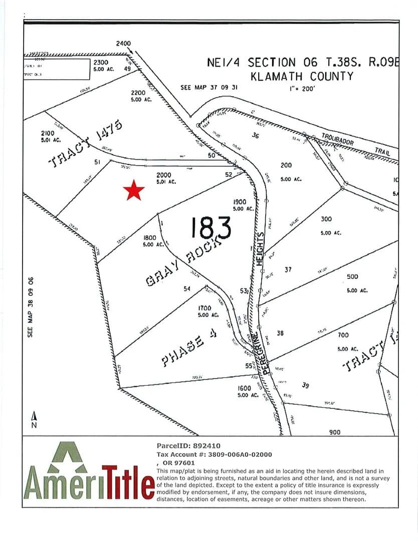 5-acre lot in the norther end of Paradise Hill Subdivision, a gated community just north of Klamath Falls. Lot has amazing views of Klamath Falls. Steep slope up from the road. Power box on lot. Nicely treed. Annual HOA dues were $ 438 for the 2022 year.