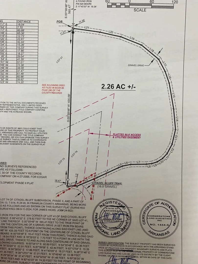 Perched high above the Arkansas River, this stunning 2.2-acre property on Citadel Bluff Trail offers breathtaking views in a serene, park-like setting. The cleared lot is adorned with established shade trees, providing both beauty and privacy. With level terrain that gently slopes toward the river, the land adjoins scenic bluff lines lined with massive boulders, creating a truly picturesque backdrop. Ready for your dream home or cabin, the property features electric on-site, rural water available at the county road, and a completed perk test. A new survey has been completed, and easy access via a well-maintained county road ensures convenience. Just minutes from the Citadel Bluff Park boat ramp, this is a rare opportunity to own a piece of natural beauty in a prime location!