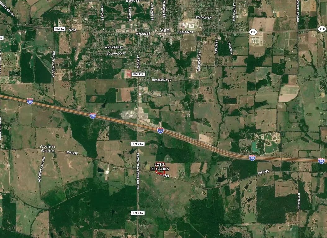 Beautiful 9 acres just off I-20 on 1995 in Van, TX. Quick access to Dallas or Tyler makes this an awesome place for a beautiful homestead. Plenty of open grazing. Lots of grass make this a highly desirable spot for building a home or using it for grazing cattle or hay production. New development growing this way should make for awesome future opportunities. Multiple parcels selling off this tract. This place is ready for your ideas! New survey required.